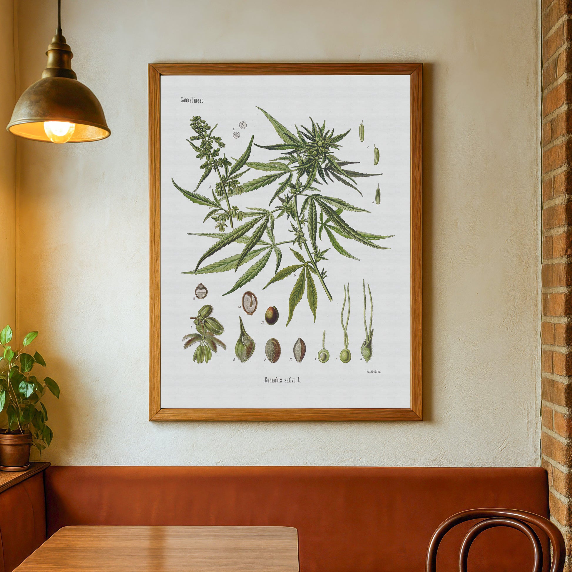 A beautiful vintage poster, made from the old illustration of cannabis sativa L, from Köhler's Medicinal Plants, 1887.