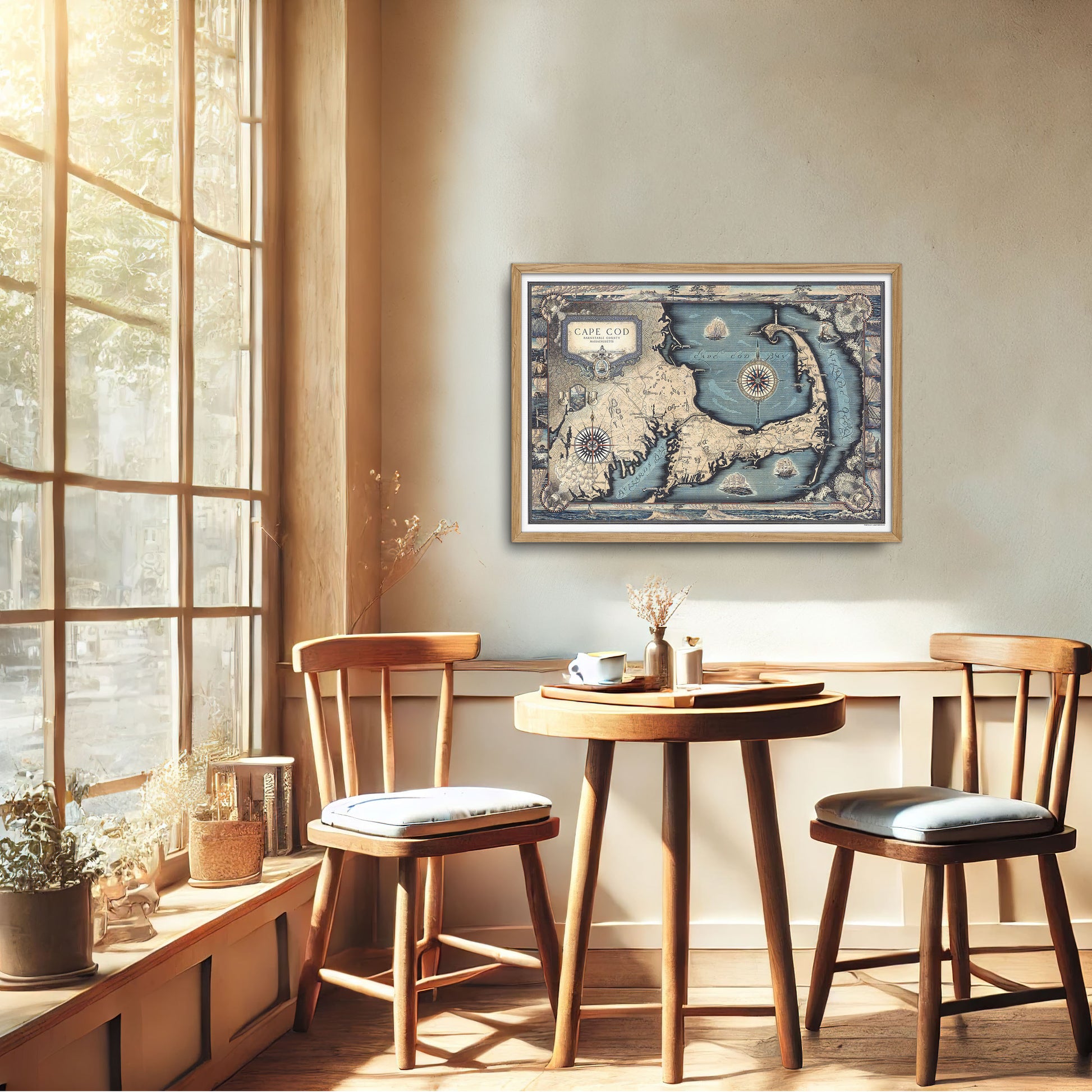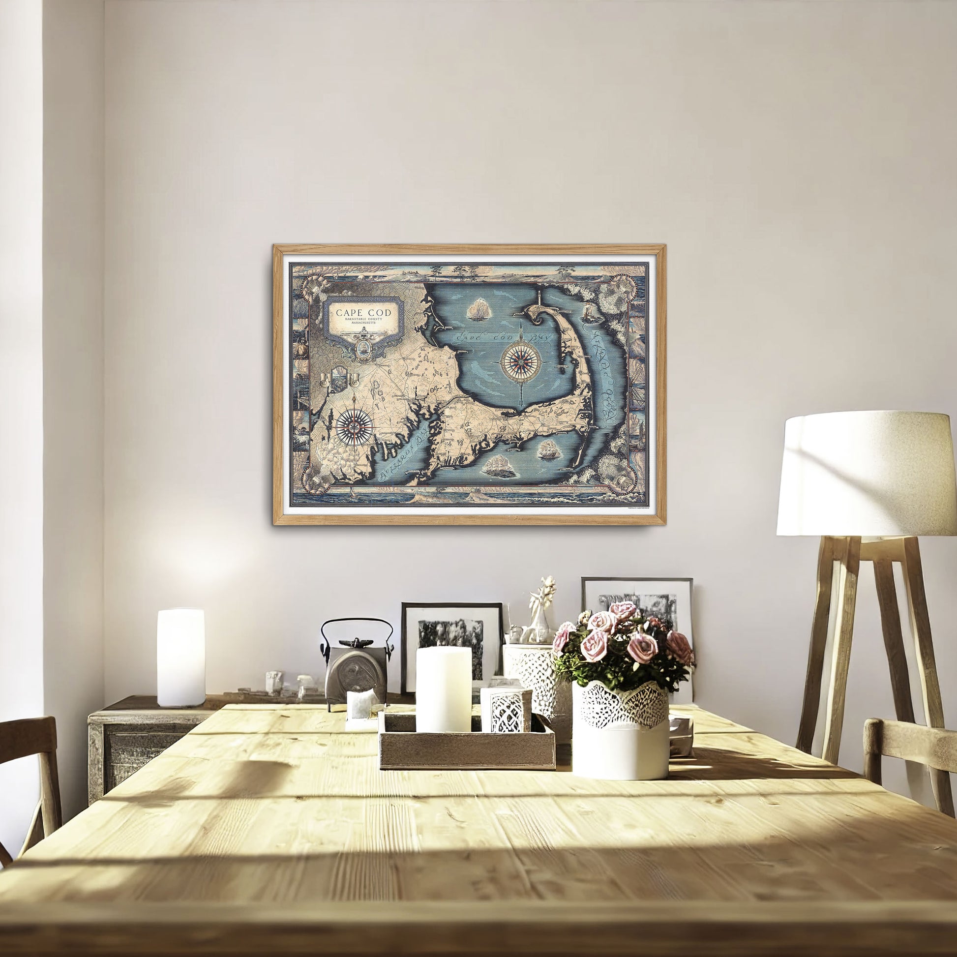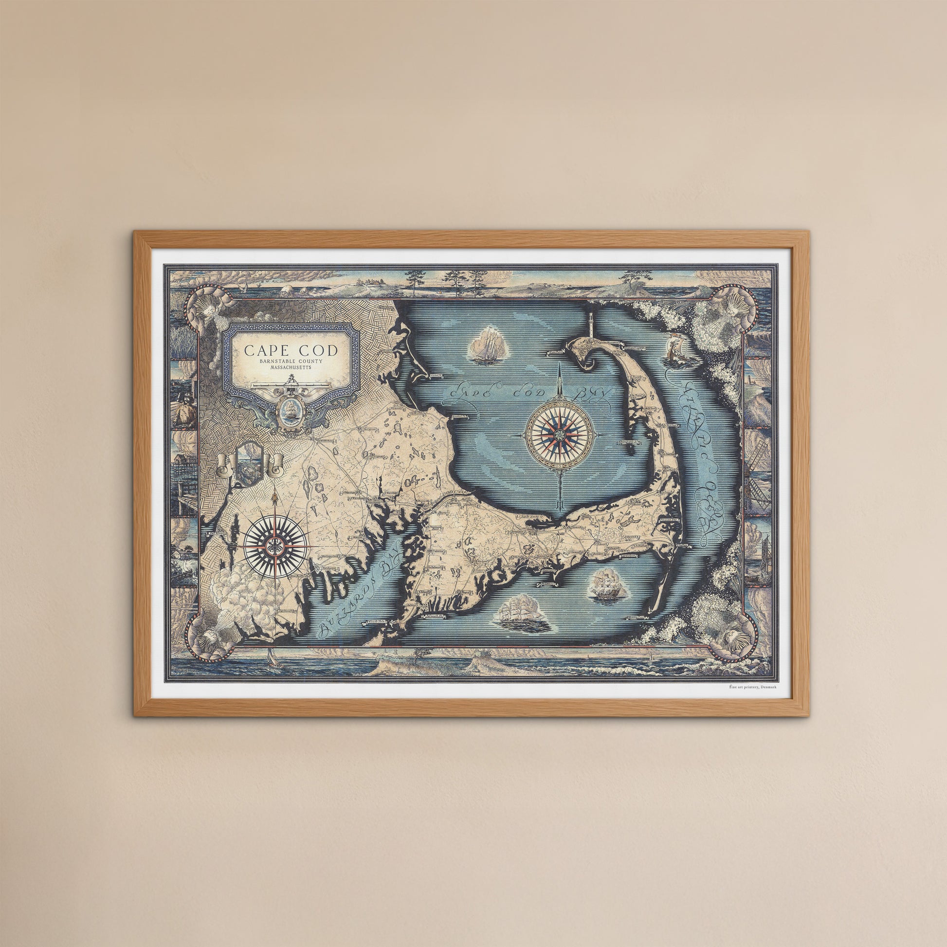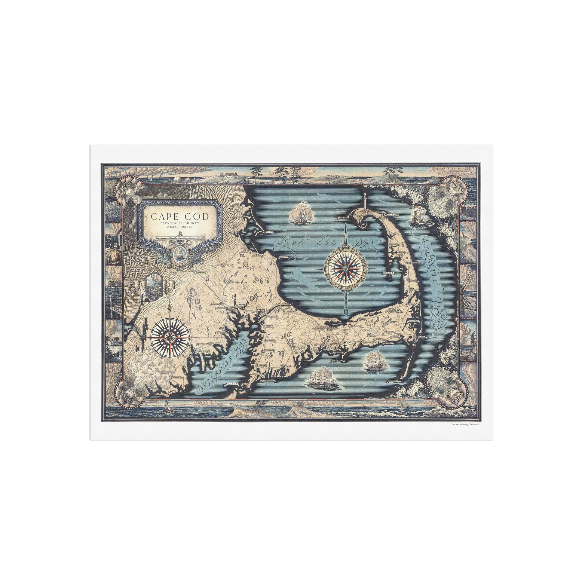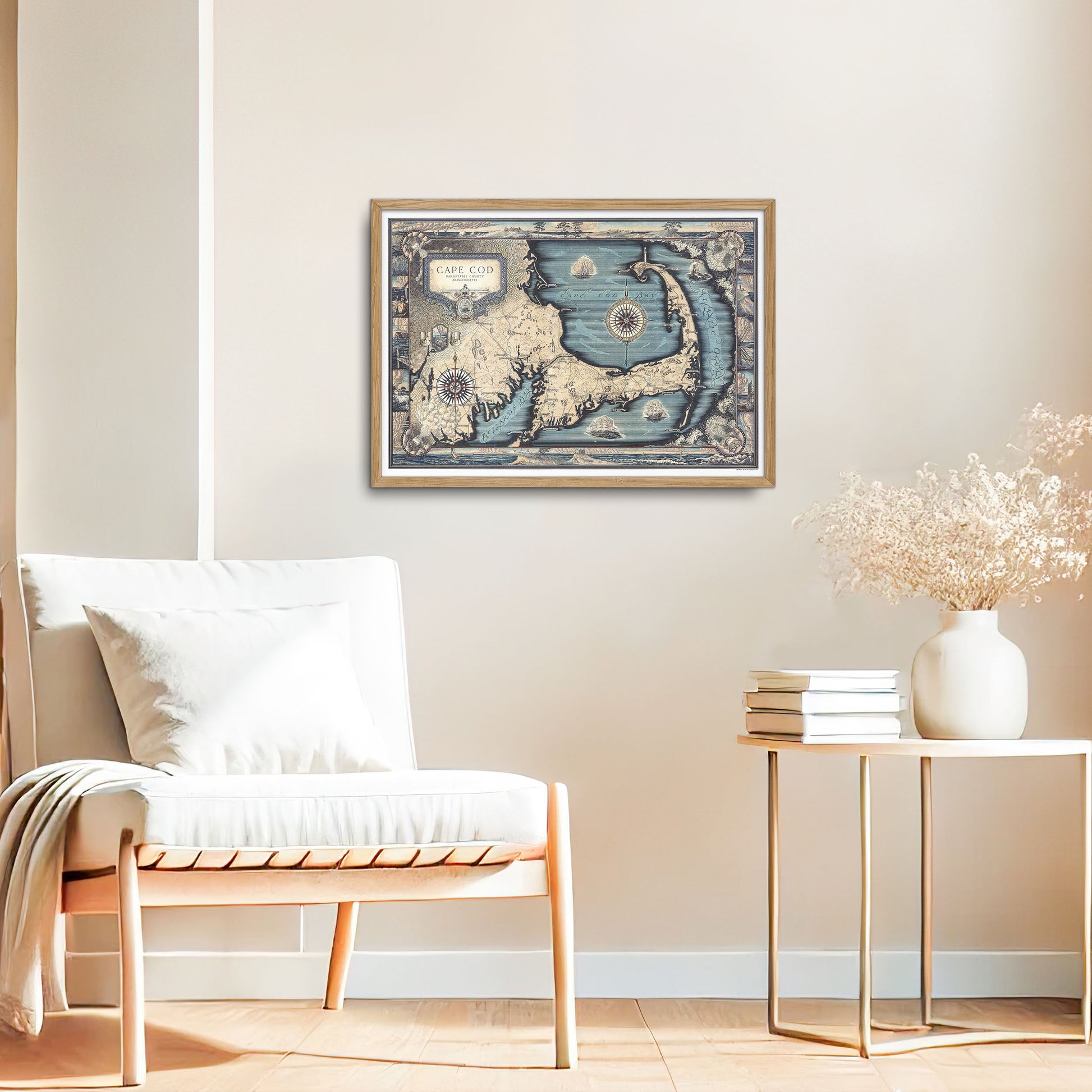Dette unikke kortprint er ideelt for kortsamlere, Cape Cod-entusiaster og dem, der elsker vintage indretning. Kortet bringer Cape Cods skønhed og historie ind i hjemmet eller på kontoret som en tidløs del af New Englands kulturarv.