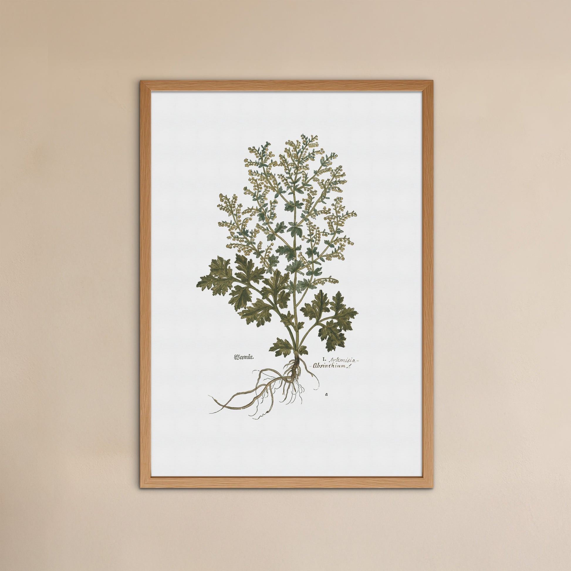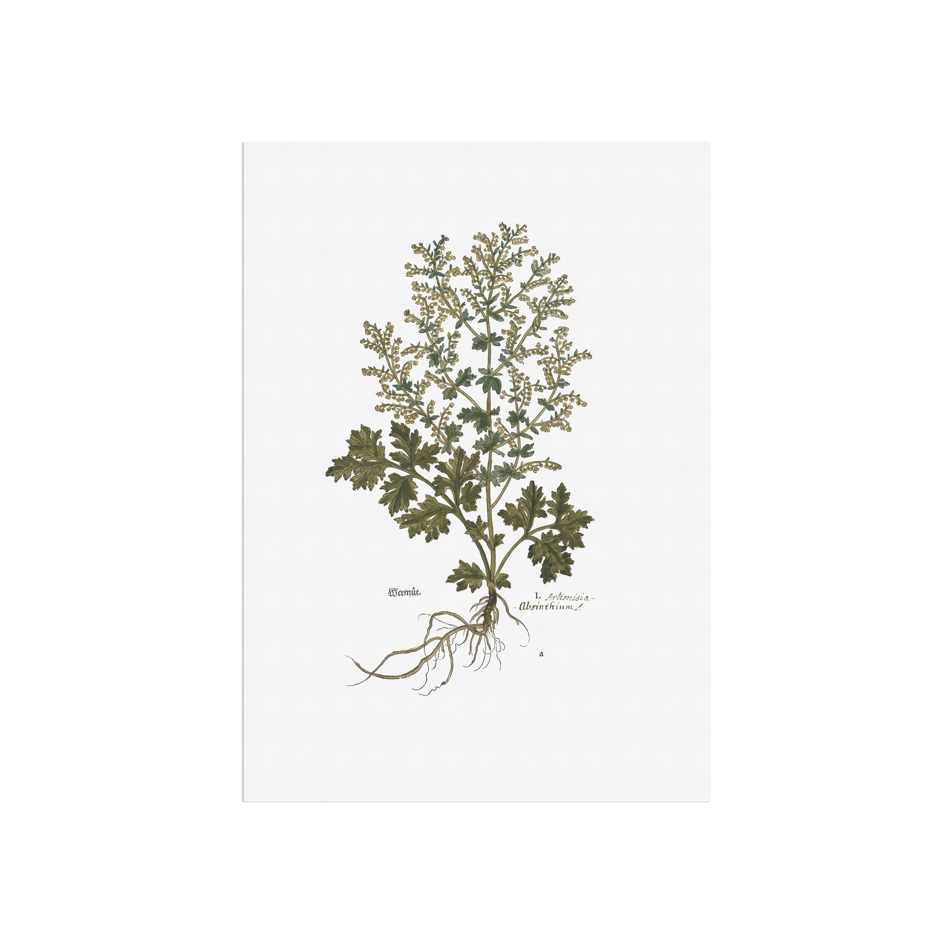 Oplev skønheden og historien i Artemisia absinthium, bedre kendt som Malurt, i denne detaljerede botaniske illustration fra Leonhart Fuchs’ banebrydende værk New Kreüterbuch (1543). Med sine fint inddelte blade og små gulgrønne blomster er malurt en plante, der både har været frygtet og elsket gennem århundreder.