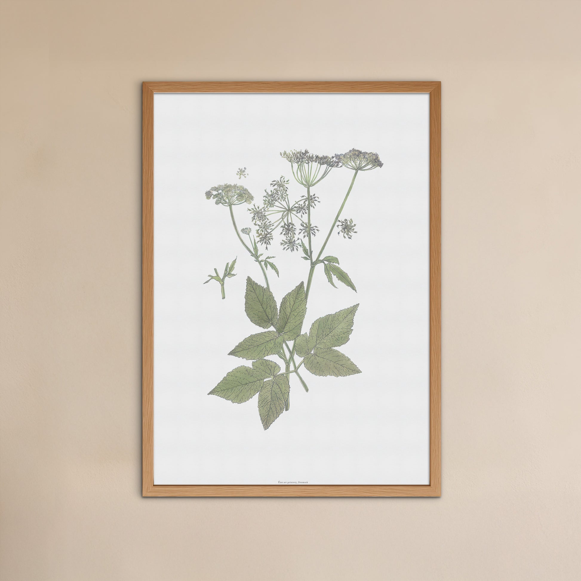 Giv dit hjem en unik og diskret charme med denne smukke, botaniske plakat af Skvalderkål (Aegopodium podagraria). Plakaten er en elegant reproduktion af en historisk illustration, der med fine detaljer fanger essensen af denne velkendte plante, fra dens karakteristiske blade til de fine, hvide blomsterskærme.