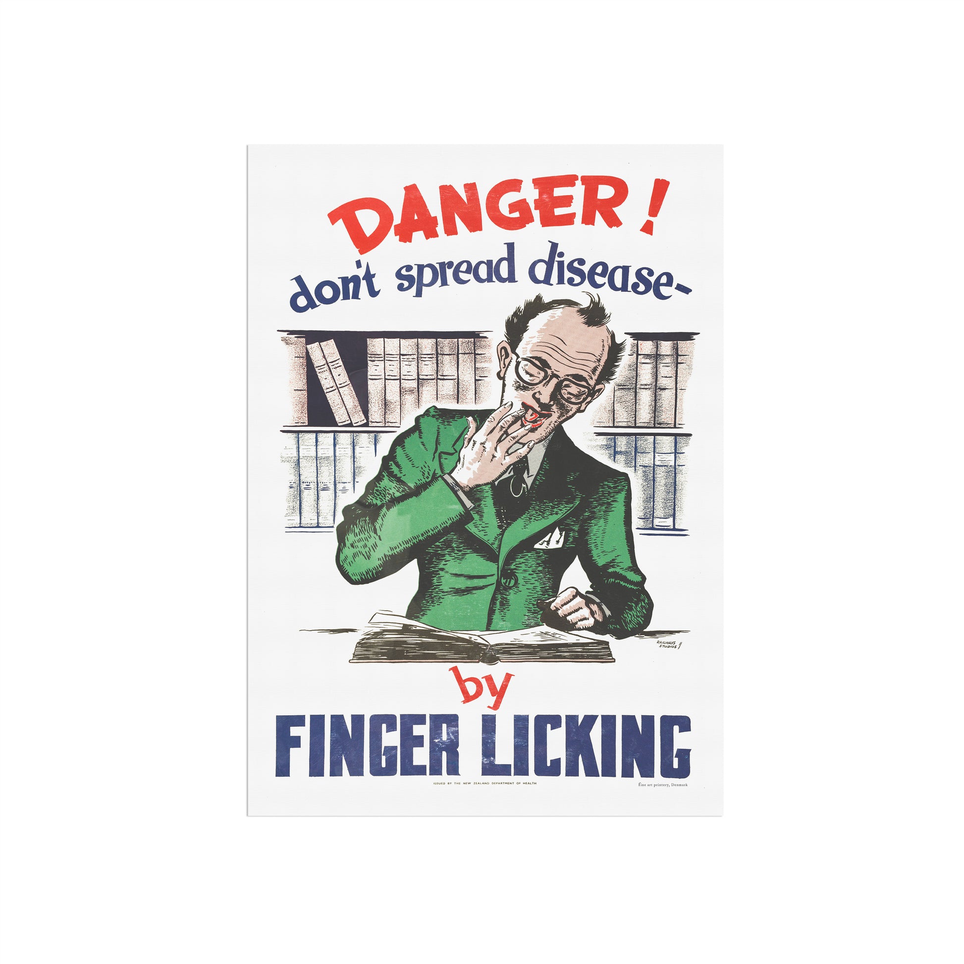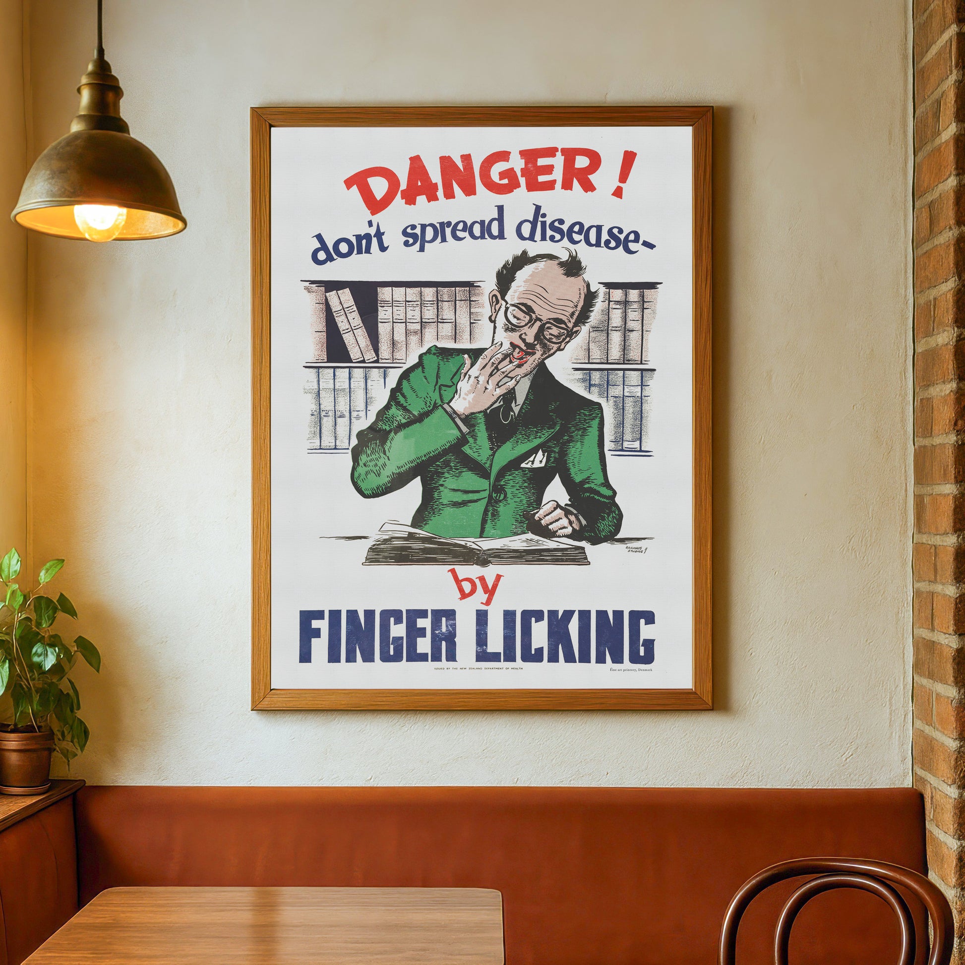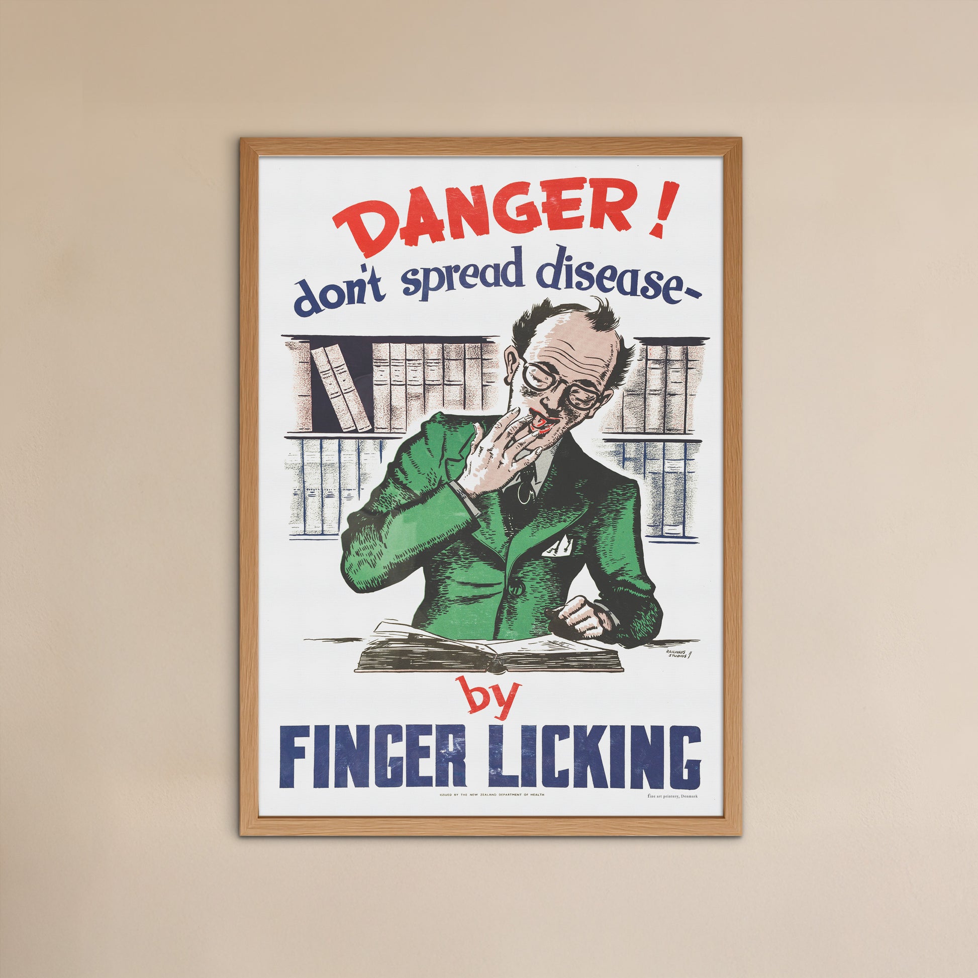 En klassisk eksempel på sundhedspropaganda, her er det fra det New Zealandske departementet for sundhed, der forsøger at få borgerne til at slikke lidt mindre på deres fingre, for at reducere smittespredning generelt.