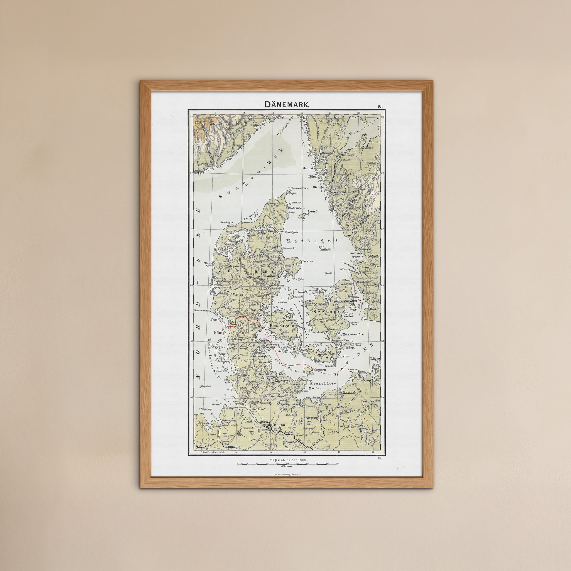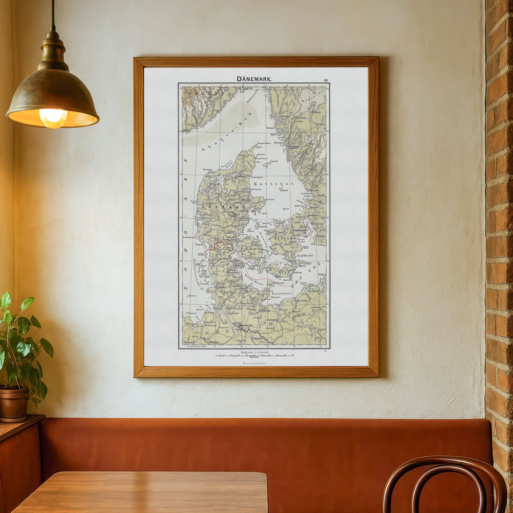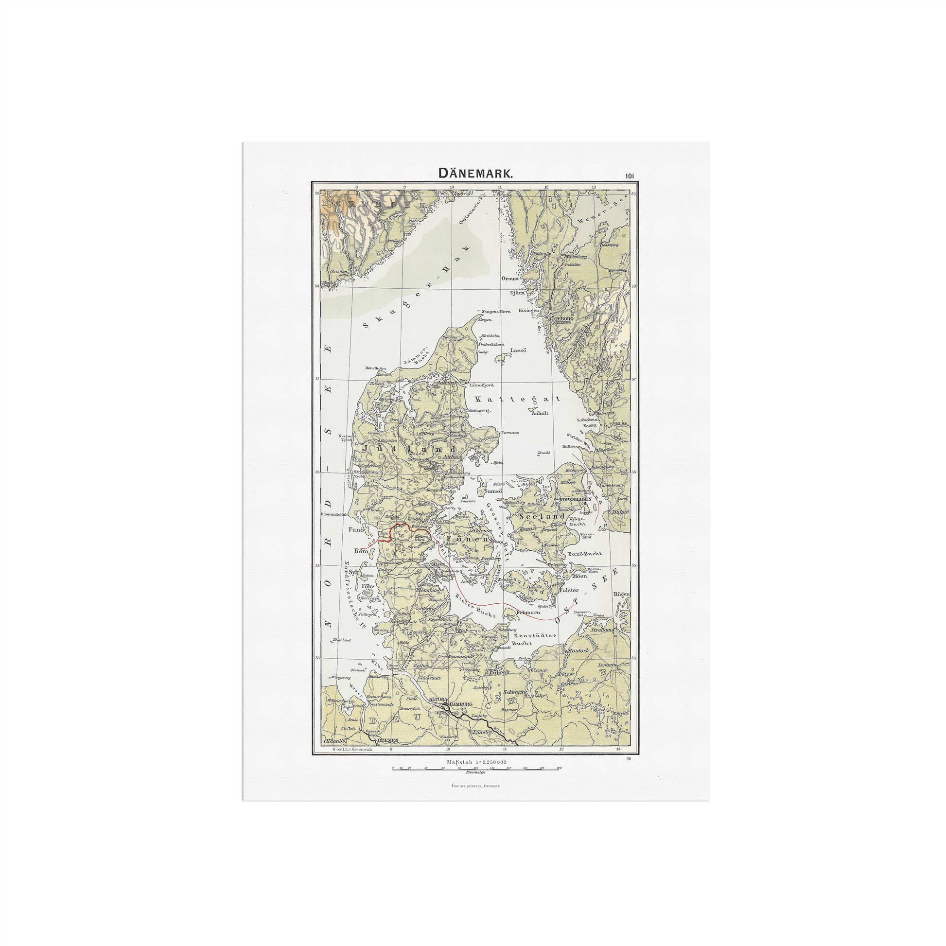 Et smukt Danmarkskort, vist første gang i 1896 i det tyske Dierke skoleatlas for videregående uddannelsesinstitutioner, udgivet af C. Diercke og E. Gaebler.
