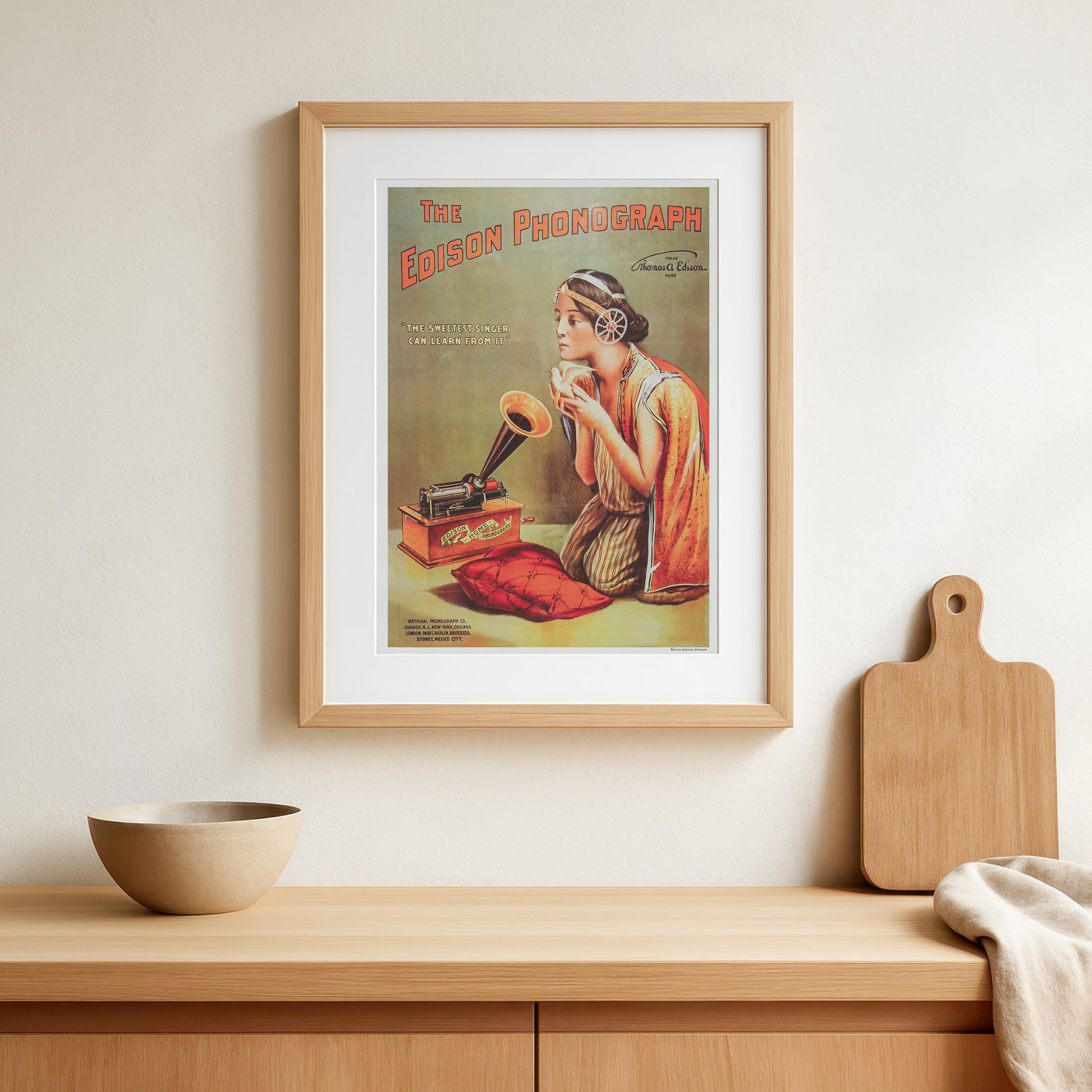 Når man ser tilbage på slutningen af 1800-tallet, er det umuligt at ignorere den indflydelse, som Edisons fonograf havde på populærkulturen. En af måderne, hvorpå denne tidlige optageenhed blev markedsført, var gennem farverige reklameplakater, der fremhævede dens mange fordele, både som optager og afspiller. Disse plakater viste ofte apparatet omgivet af mennesker og/eller dyr, mens de lyttede til fonografen.