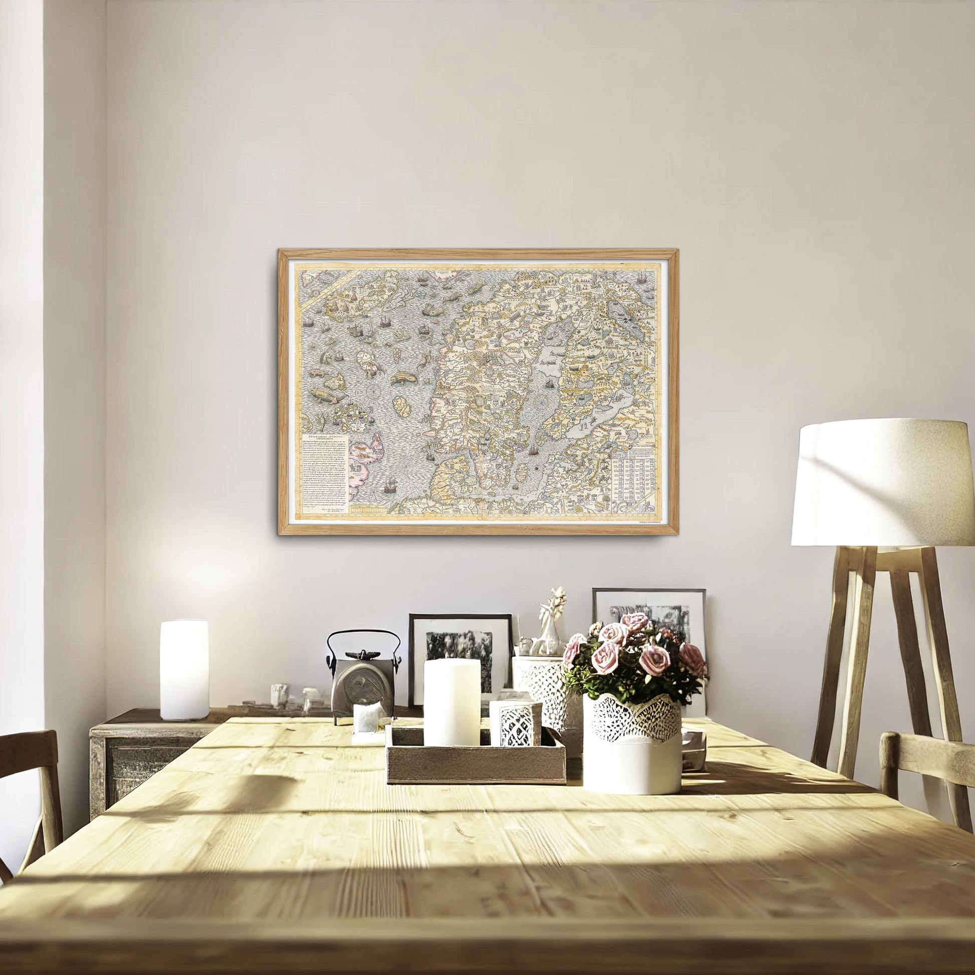 Det skønne kort over Norden blev oprindeligt lavet i 1572 af franskmanden Antony Lafreri, som baserede sit værk på det lidt ældre vægkort Carta Marina fra 1539, som blev lavet af Olaus Magnus.