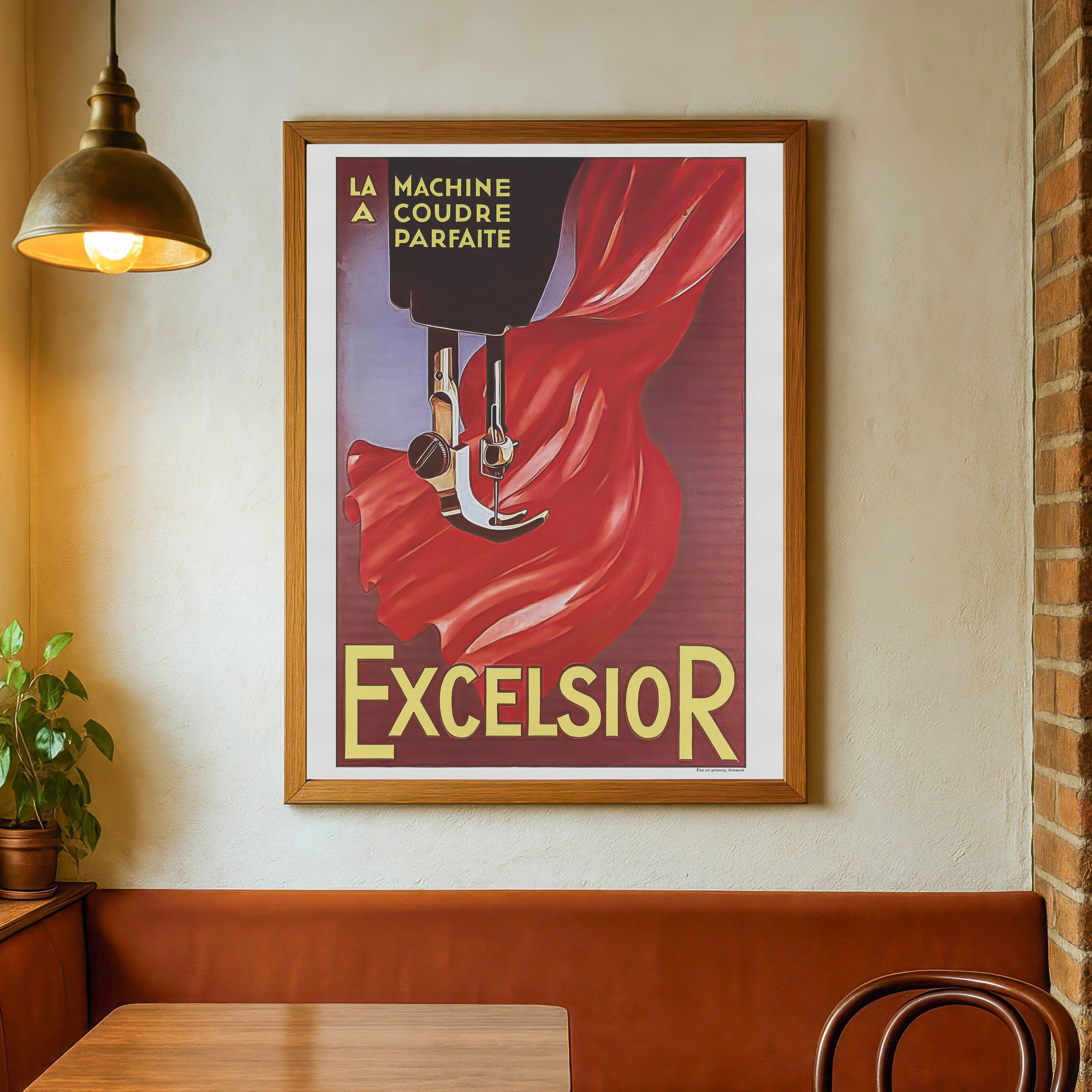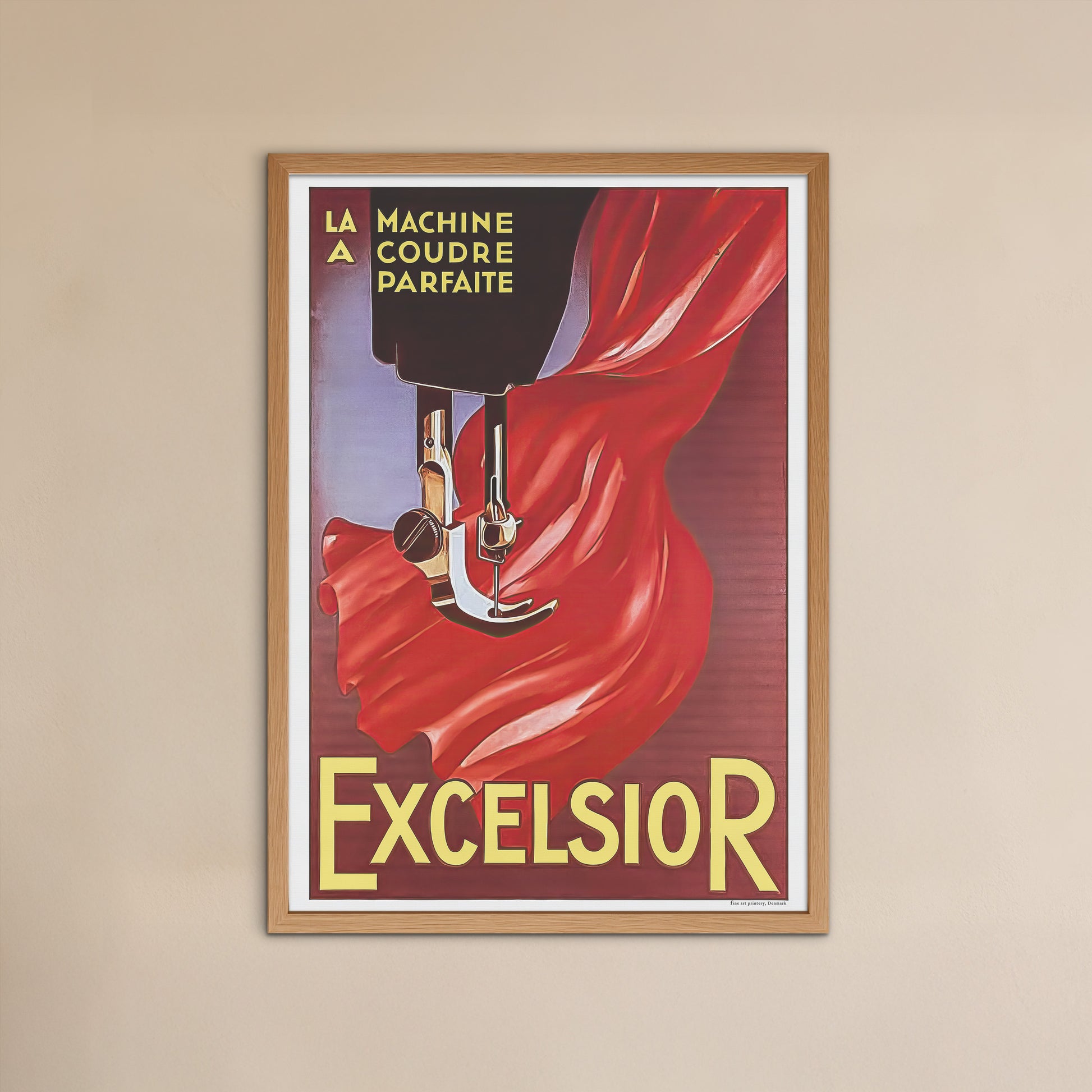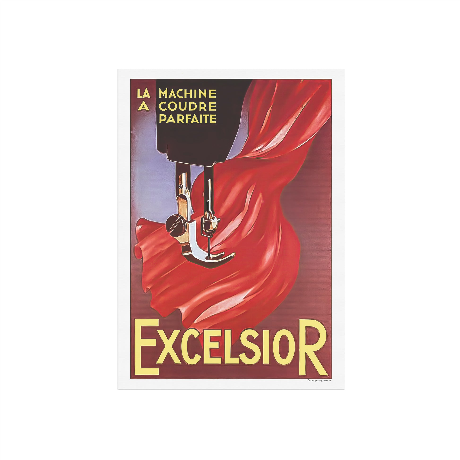 Oprindeligt er det en fransk plakat fra ca.1920 designet af Jean d’Ylen og brugt som en reklame for Excelsior symaskiner. Plakaten indeholder teksten ‘La Machine a Coudre Parfaite’, som kunne oversættes til noget i retning af ‘Den perfekte symaskine’.