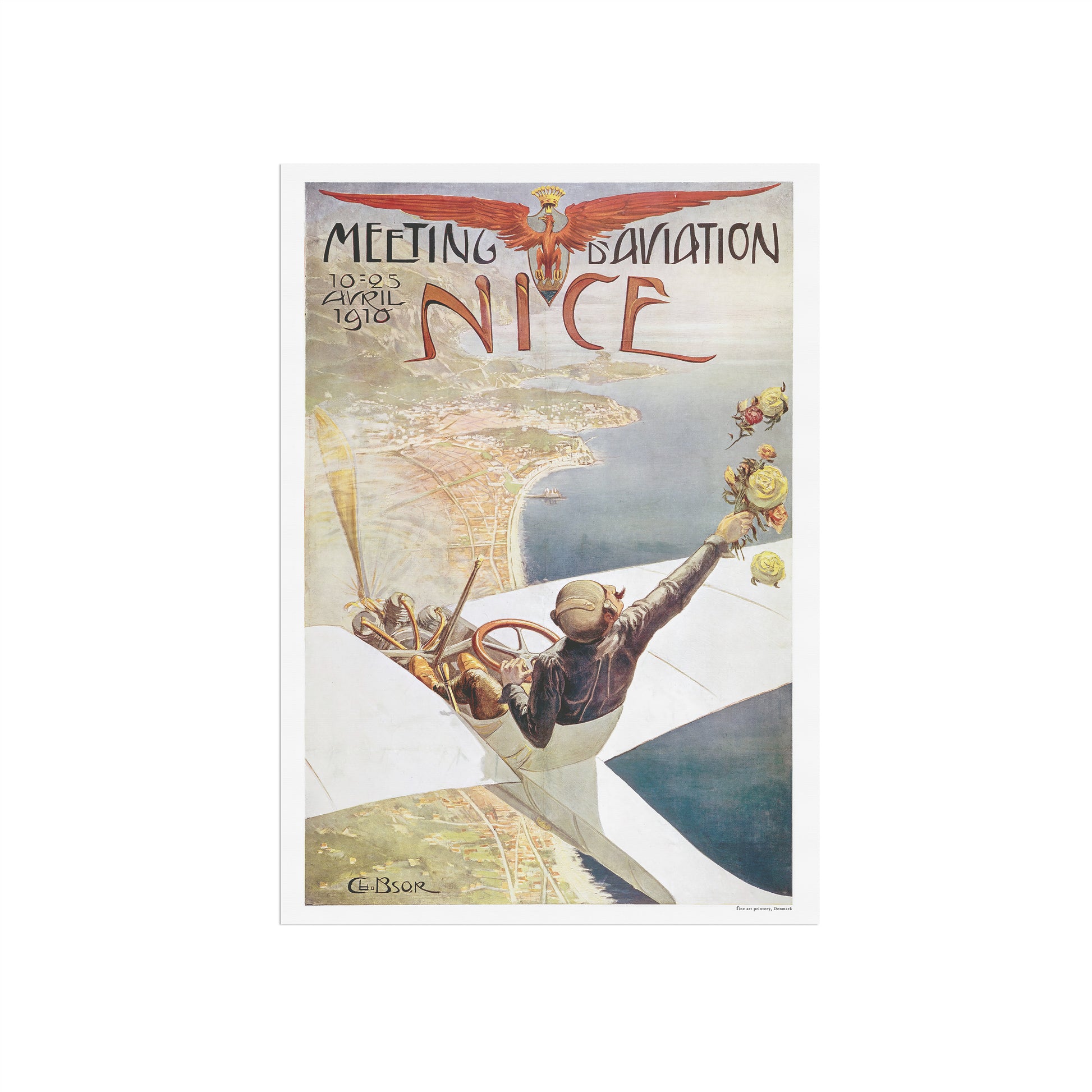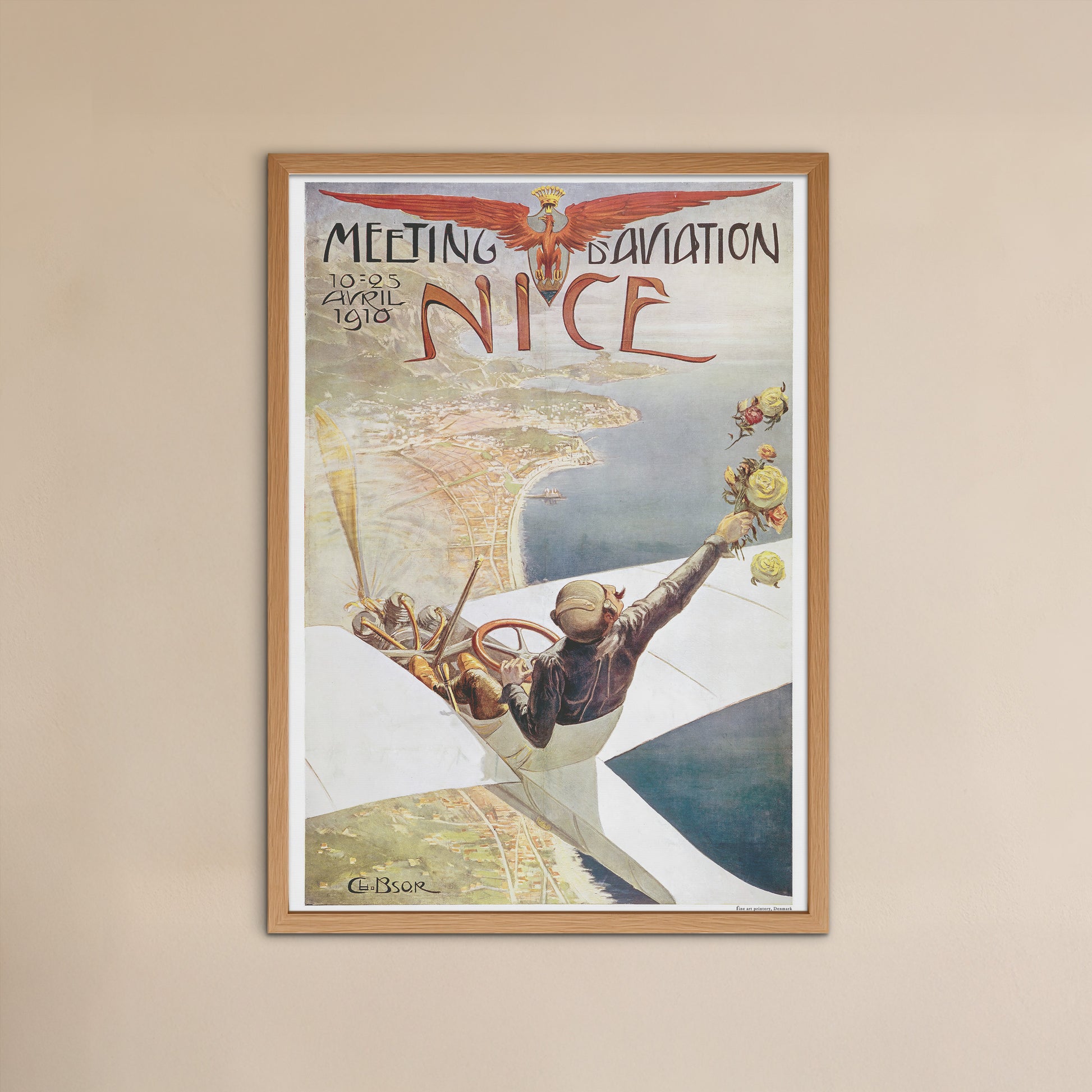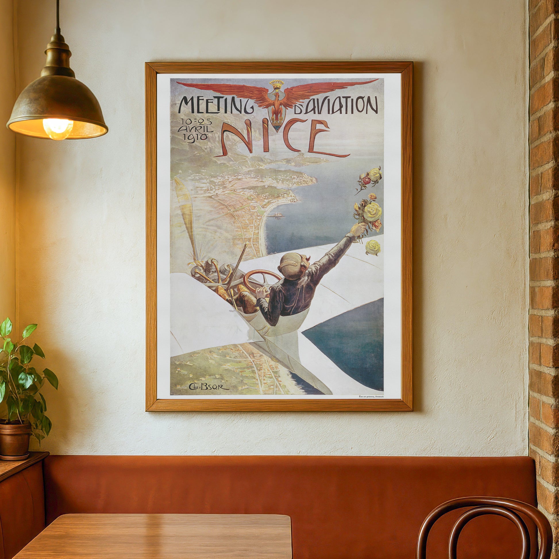 Plakaten Meeting d'Aviation Nice 1910 blev oprindeligt lavet af Charles-Léonce Brossé, og er kort beskrevet en annonce for et seværdigt luftfartsmøde i Nice i 1910.