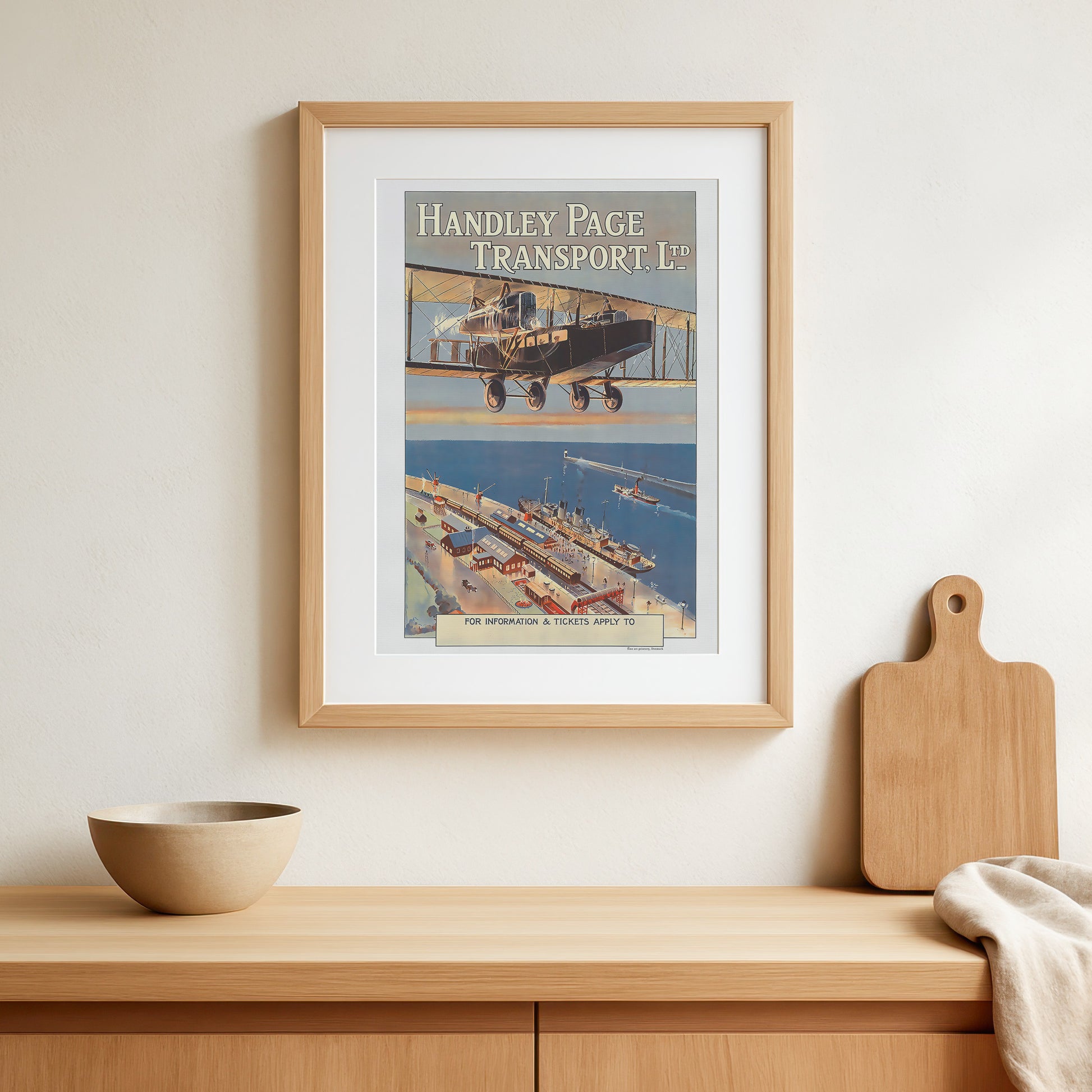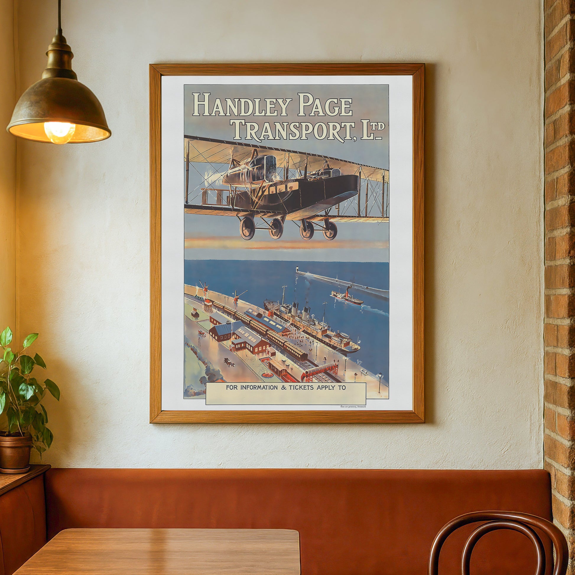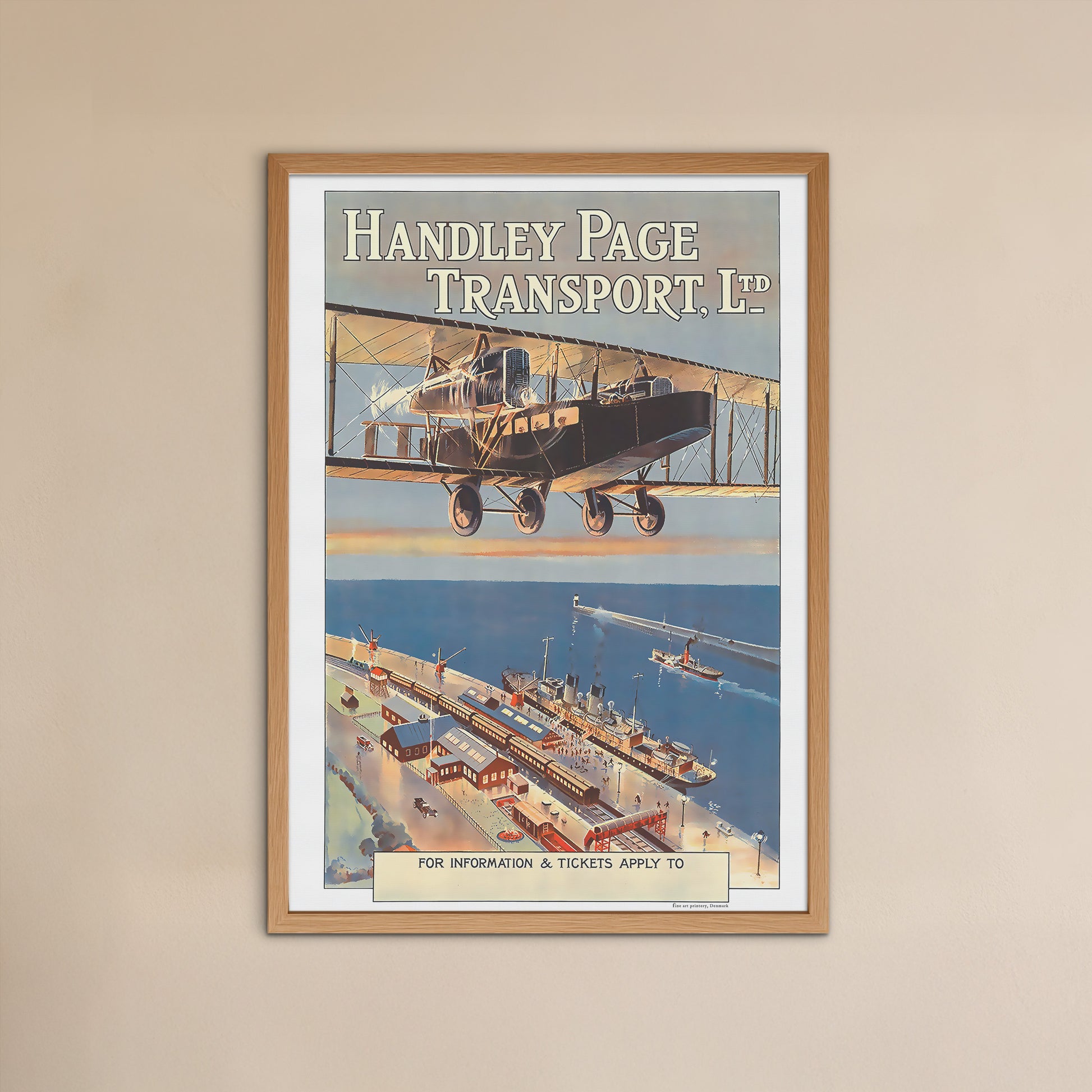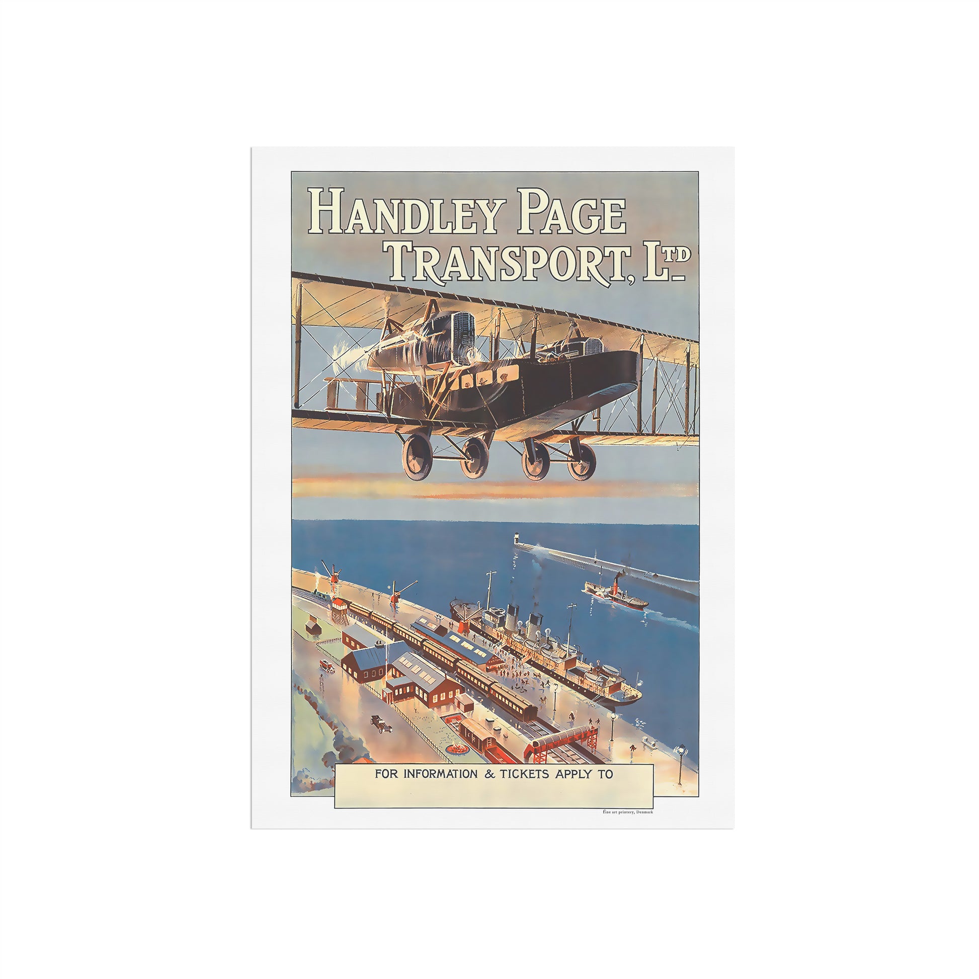 Handley Page Transport-plakaten fra 1920 er en fængslende rejsereklame, der viser den kommercielle luftfarts banebrydende æra. Handley Page Transport var et britisk flyselskab, der opererede i det tidlige 20. århundrede, kendt for sine bidrag til udviklingen af flyrejser.