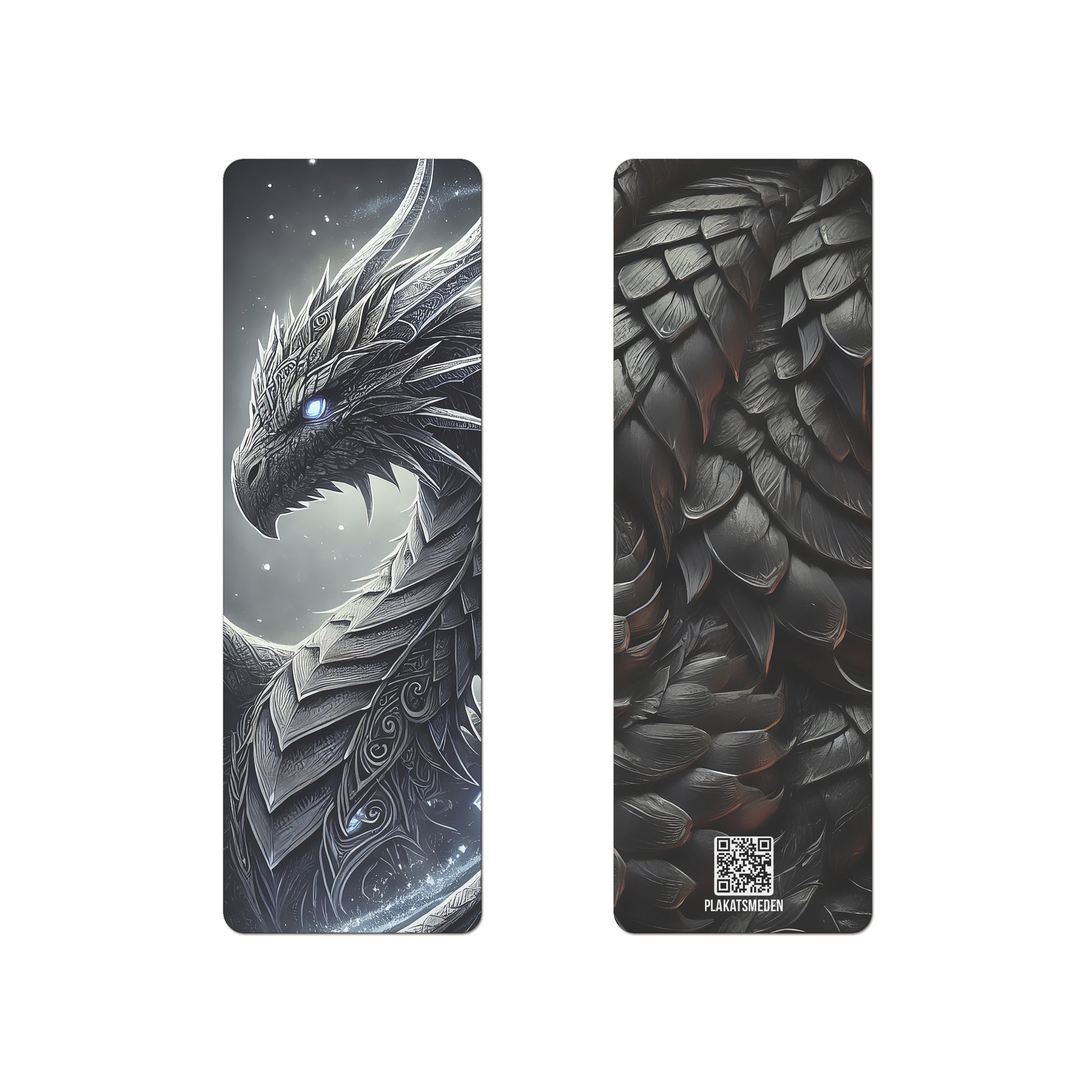 Bagsiden er dekoreret med mørke, metalliske skæl, som giver bogmærket en rå og teksturrig kontrast til den kølige elegance på forsiden. Et perfekt valg for fantasy-læsere, der elsker episke fortællinger og magiske væsner.