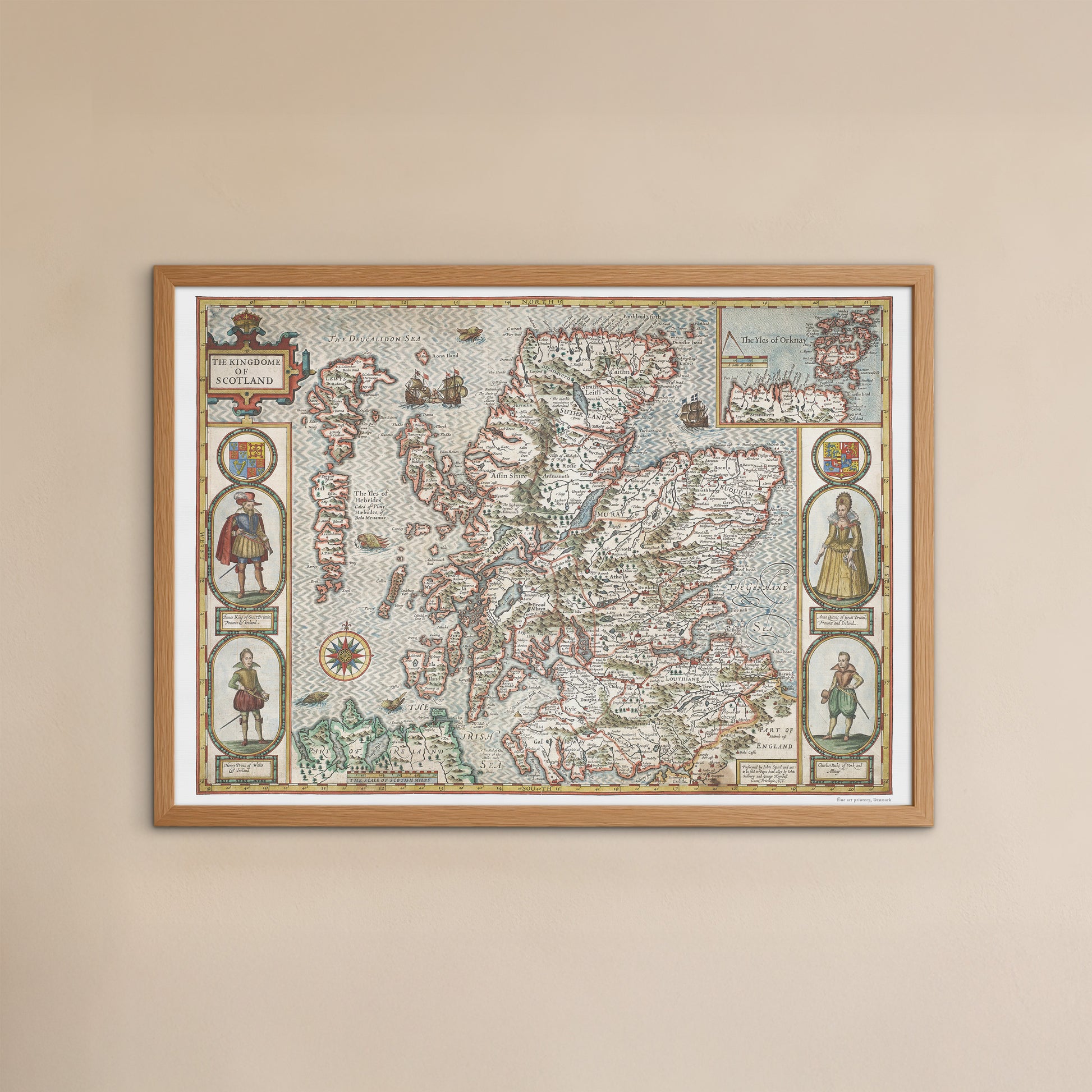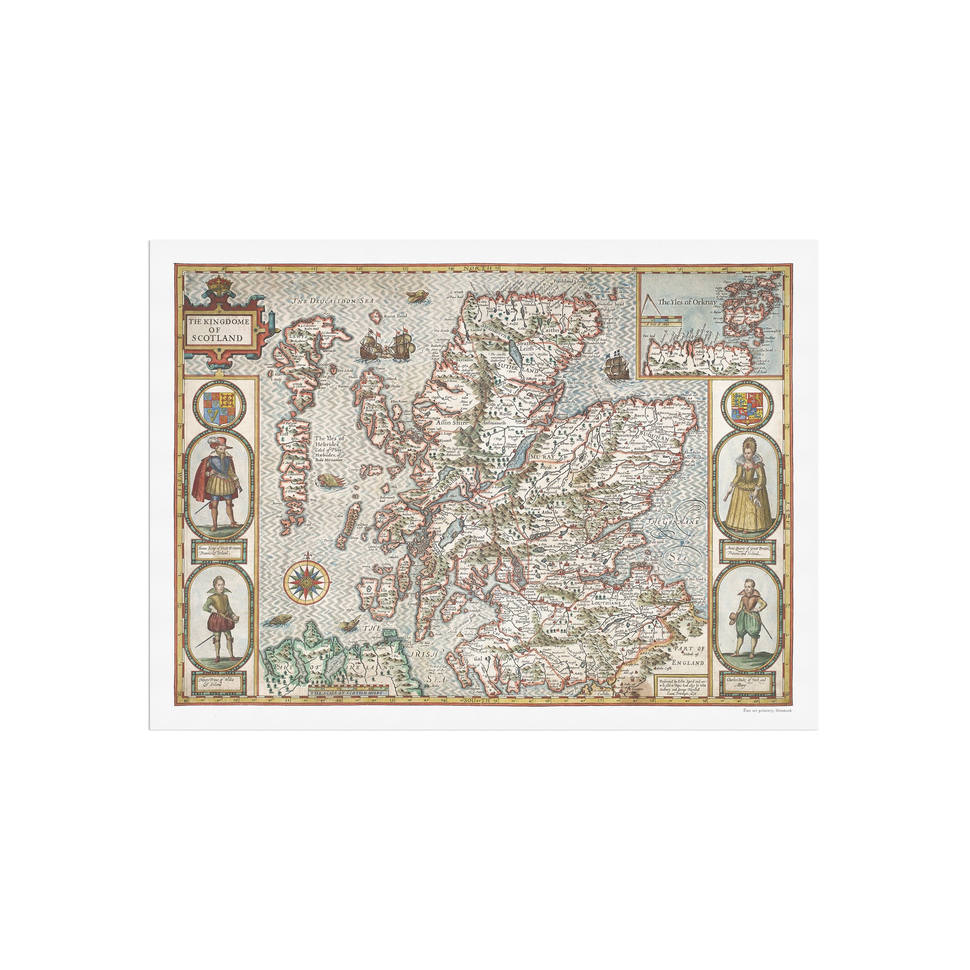 En meget smuk kopi af et kort over Skotland, bedre kendt som The Kingdome of Scotland. Kortet blev lavet af John Speed, og blev produceret første gang i 1610/1611.
