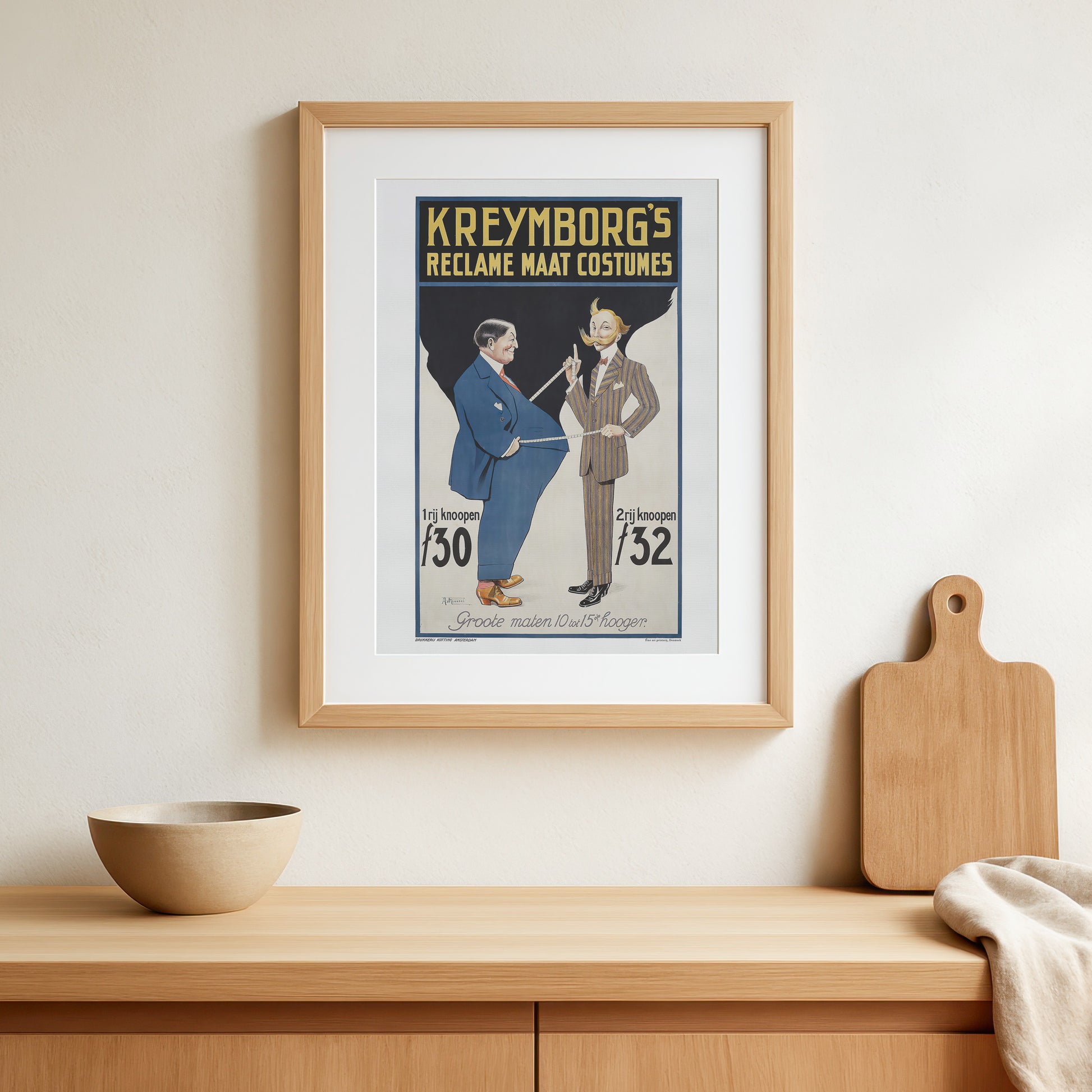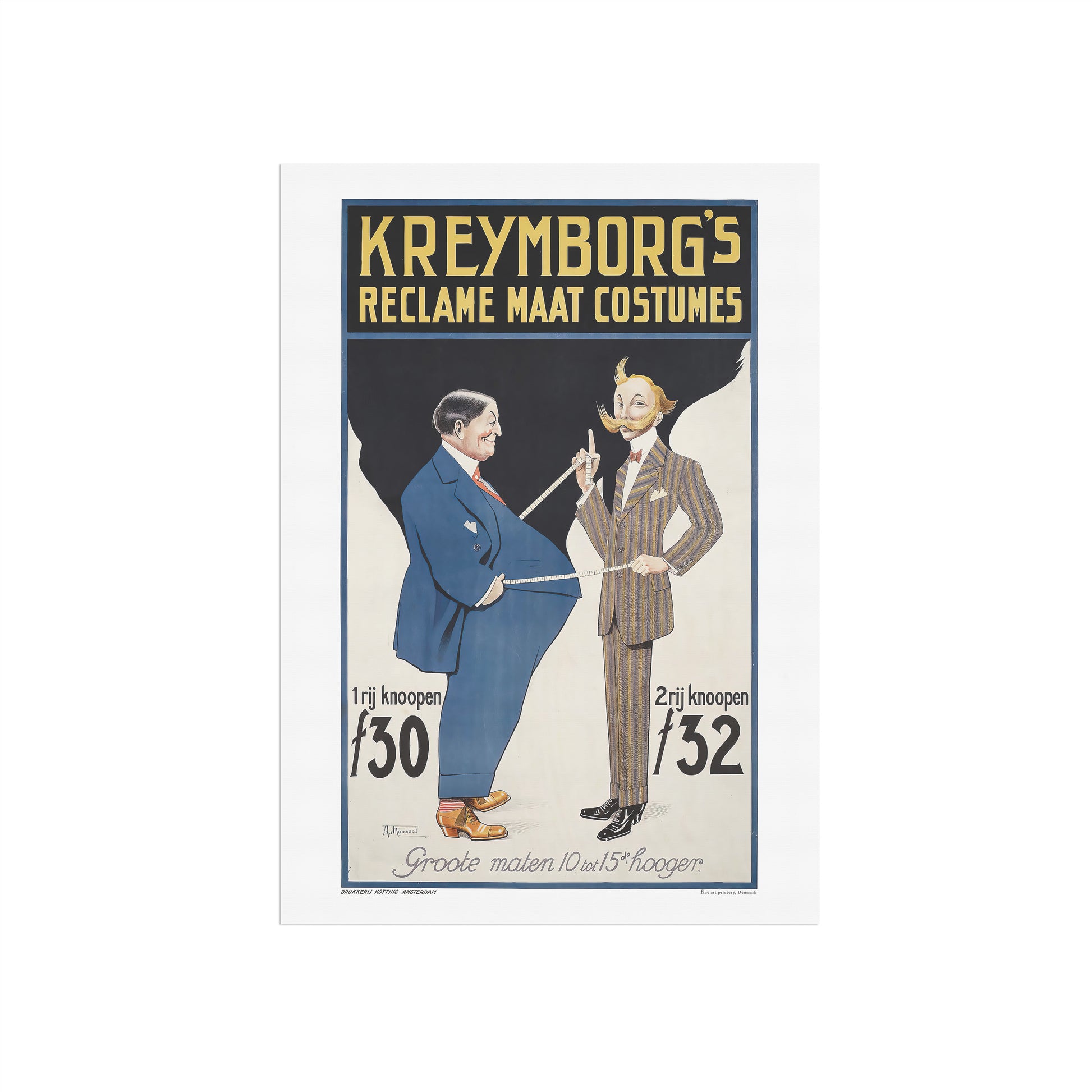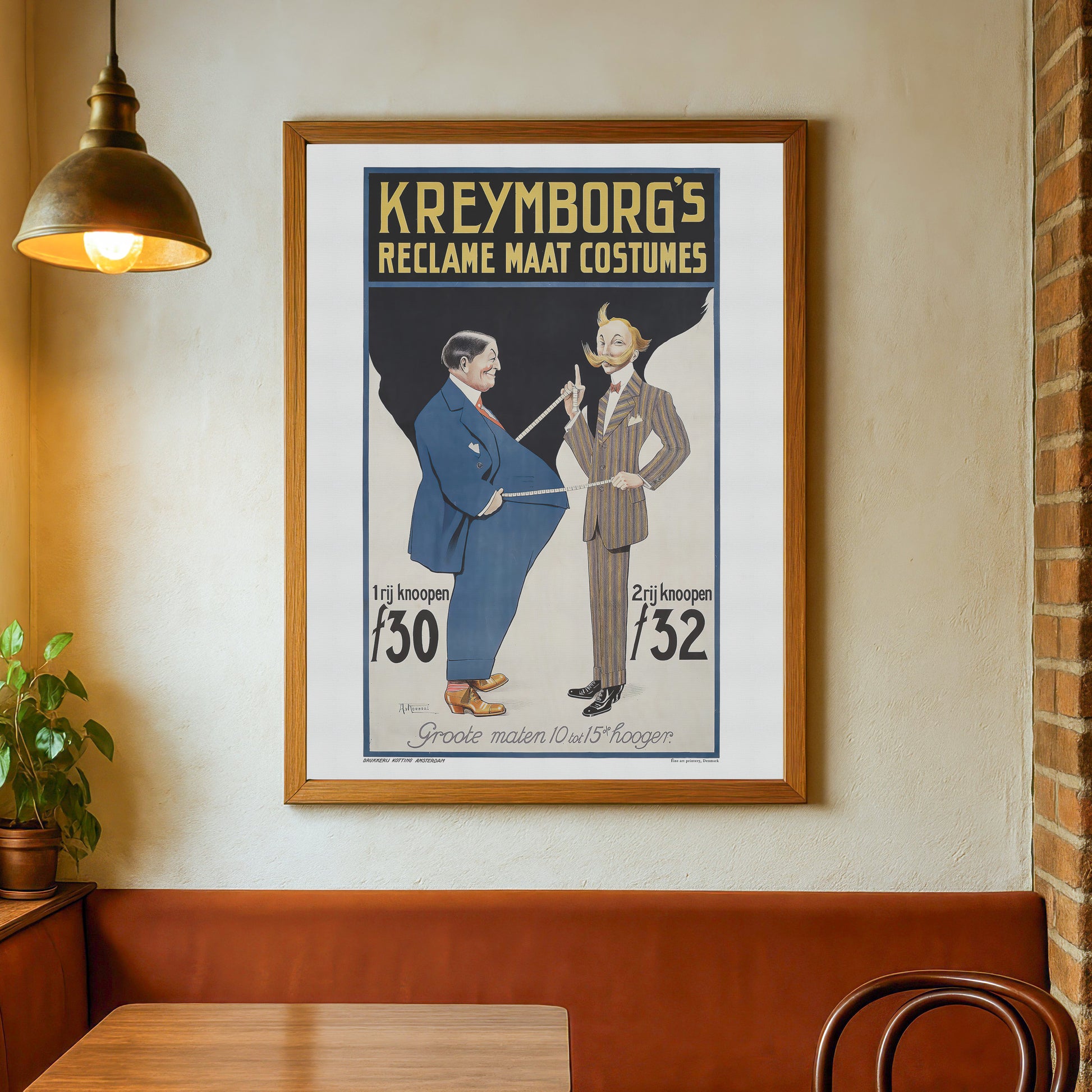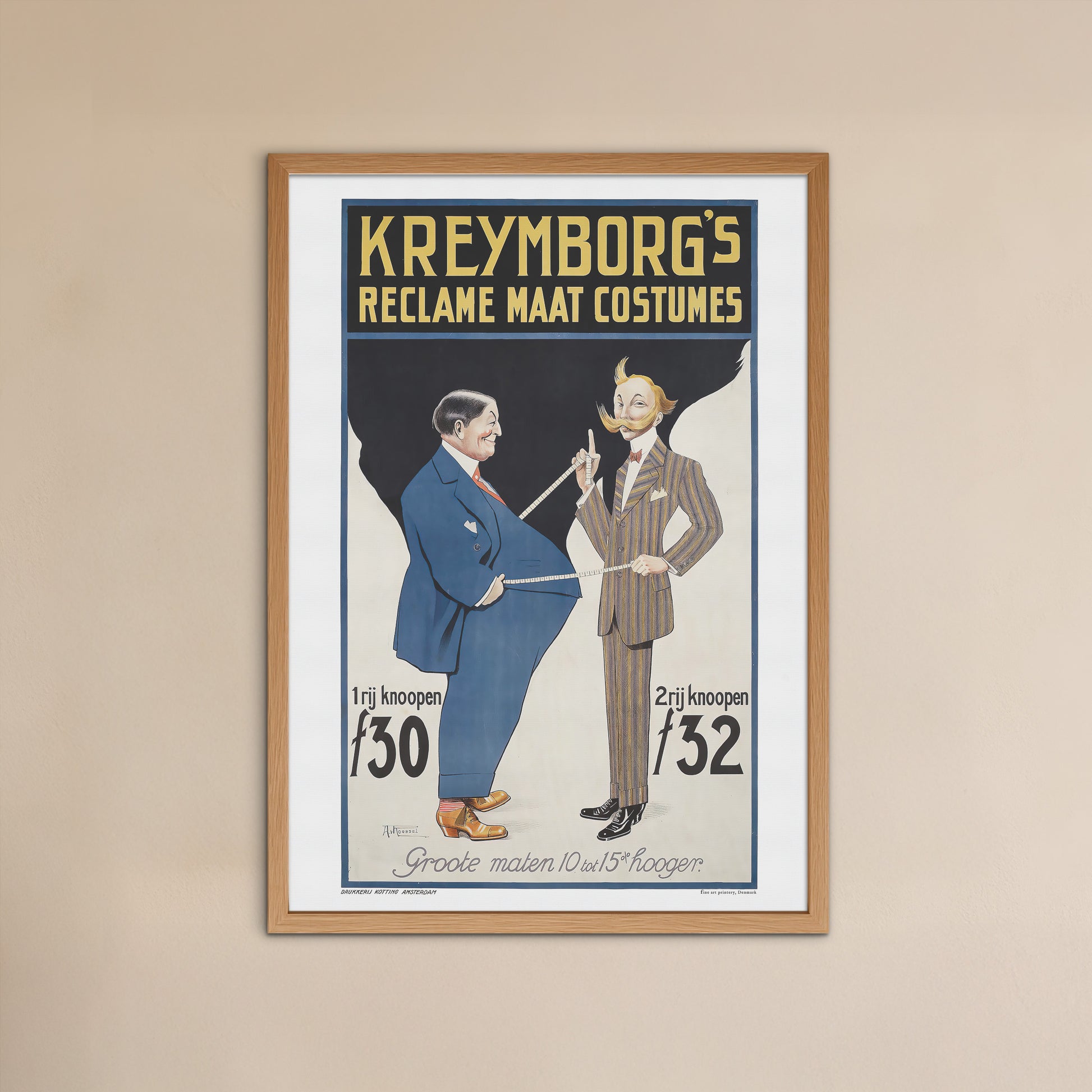 Tøj er ikke nogen ny opfindelse, heller ikke i Holland. Her ses f.eks. en flot plakat fra starten af 1900 tallet, Kreijmborgs reklame for skræddersyede klæder, eller som den hedder på originalsproget Kreijmborg's reclame maat costumes.