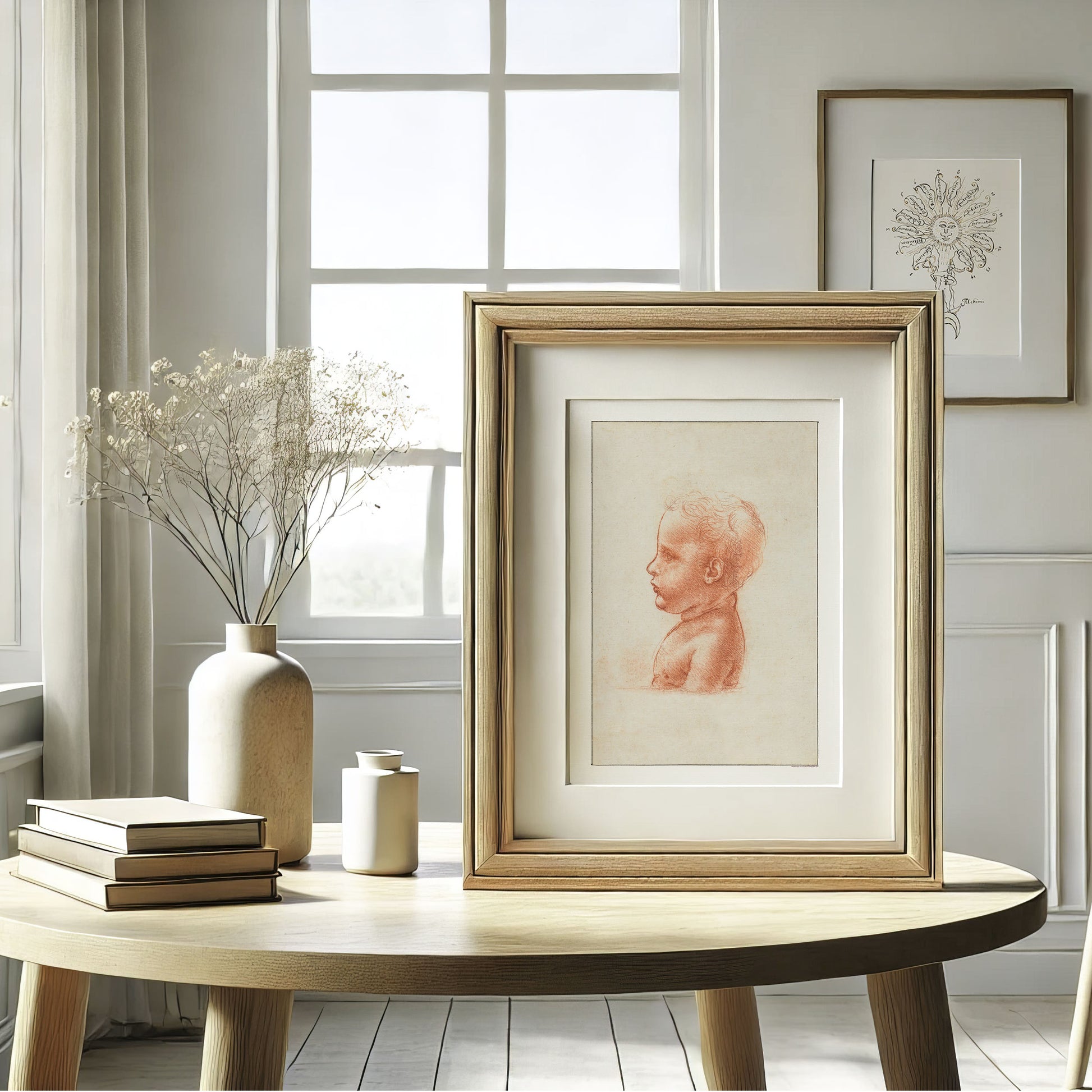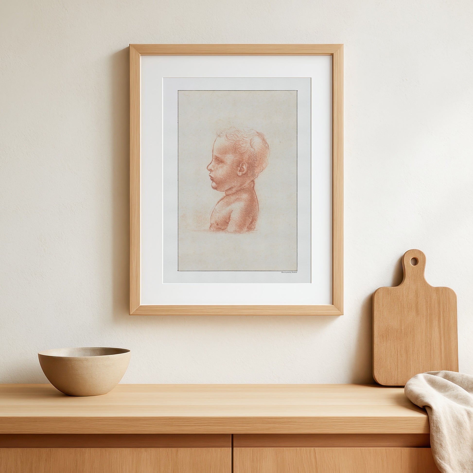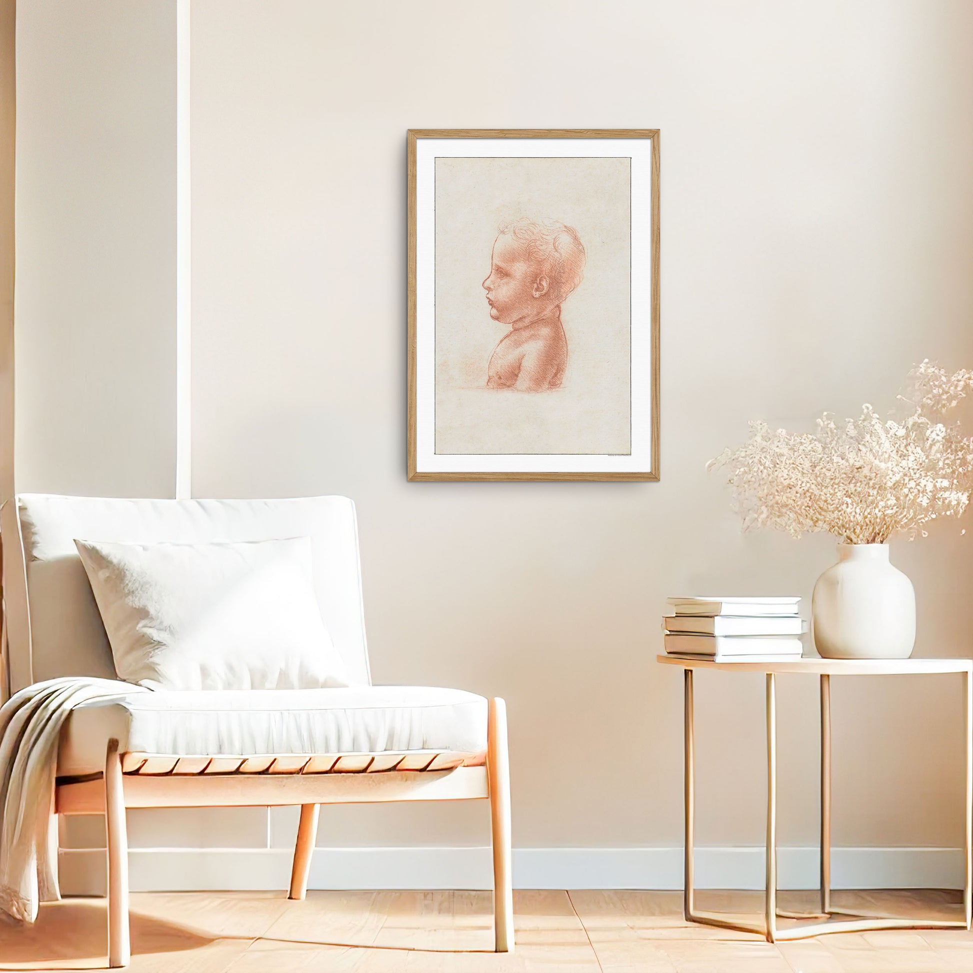 Bring renæssancens charme ind i dit rum med Leonardo da Vincis profilbuste af et barn, en udsøgt plakat, der indfanger barndommens uskyld og ro. Med da Vincis mesterlige brug af bløde linjer og fine detaljer viser denne skitse hans enestående evne til at formidle følelser og liv i en enkel, elegant form.