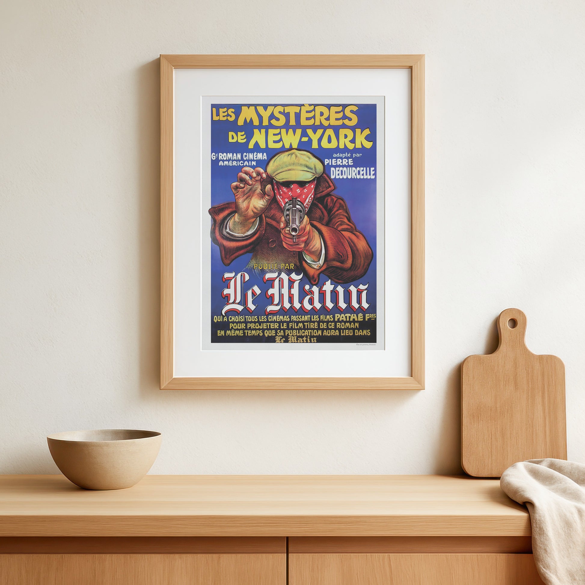Den populære franske ‘pistol’ er oprindeligt en gammel reklameplakat for en krimihistorie der både var på TV og som historie i en avis. Les Mystères de New York var en serie der først blev udgivet i Frankrig i 1915 og lavet af Pierre Decourcelle, historien blev ligeledes offentliggjort i den franske avis Le Matin.