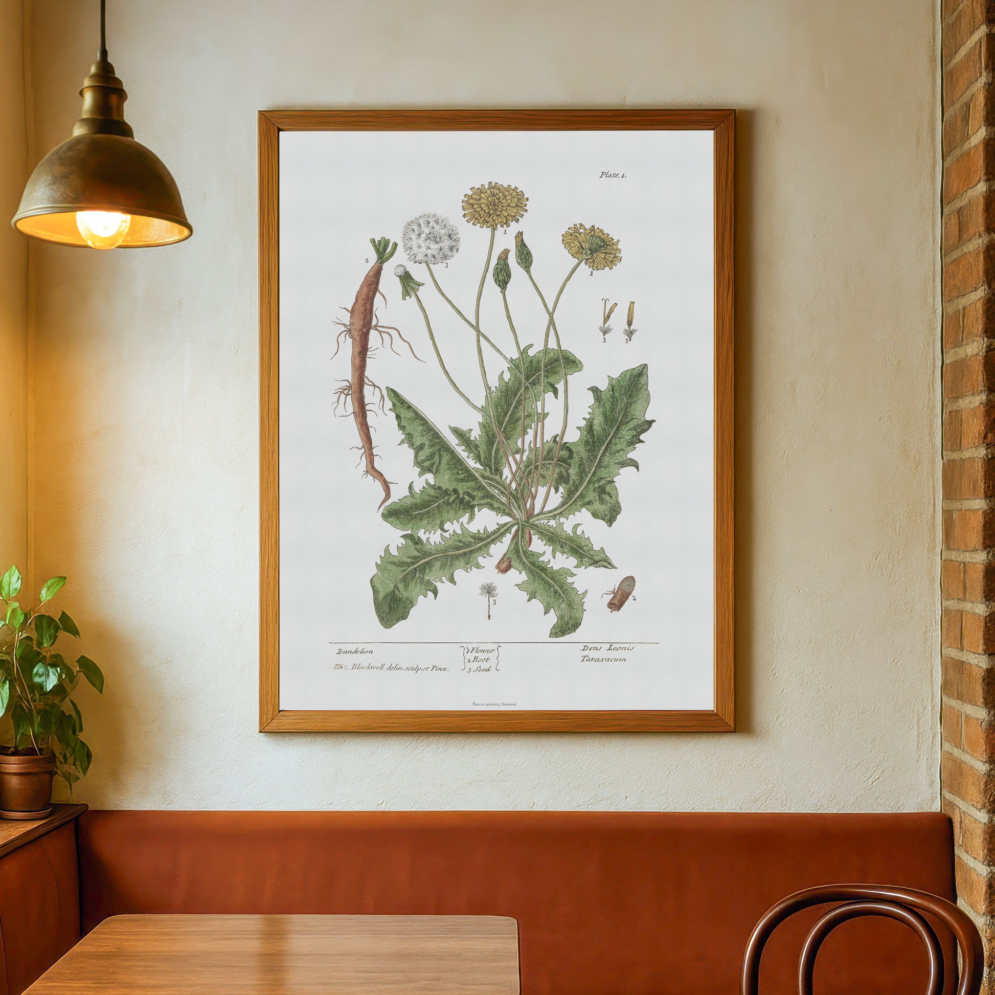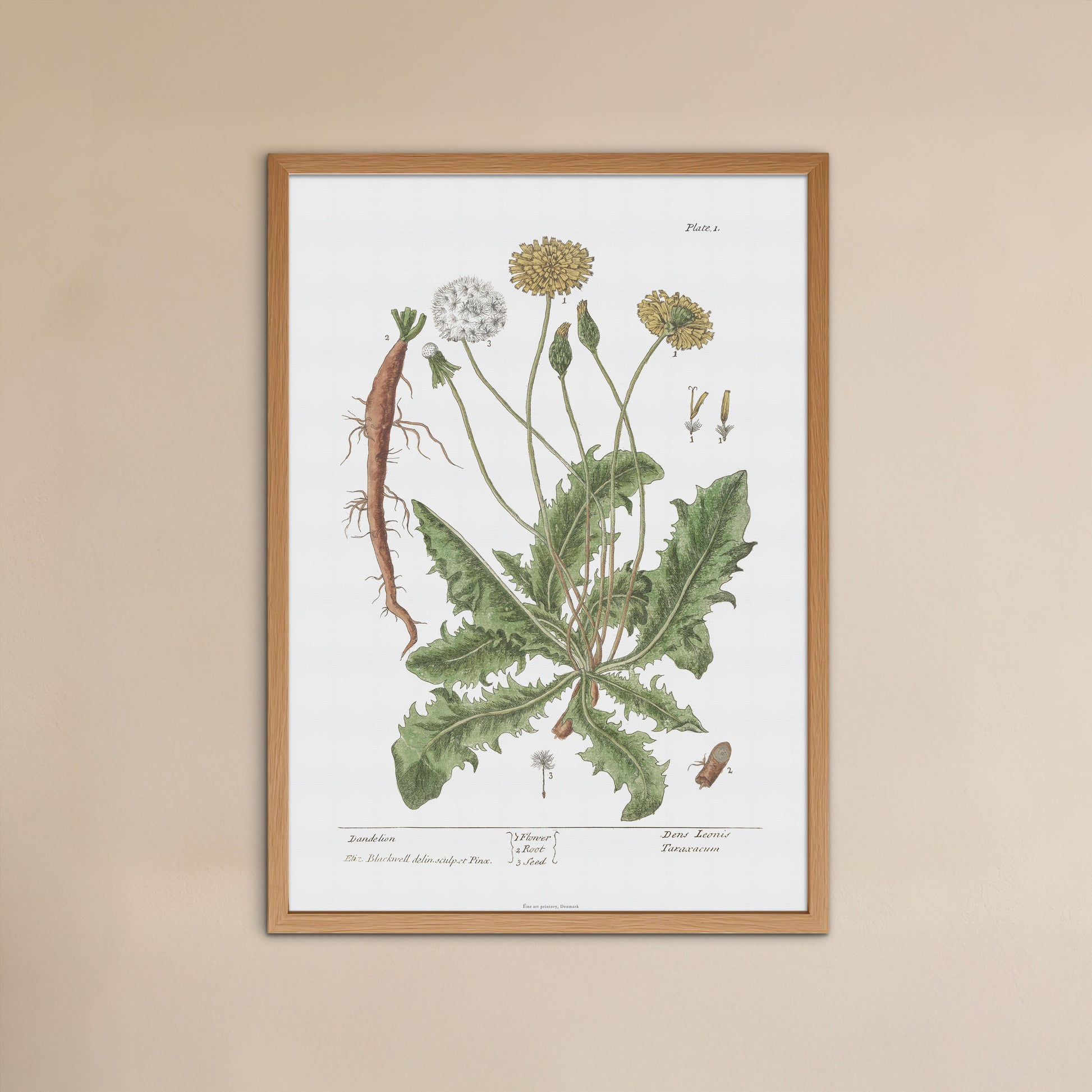 Mælkebøtte Botanisk Plakat, (Taraxacum officinale) - af Elizabeth Blackwell (1737)