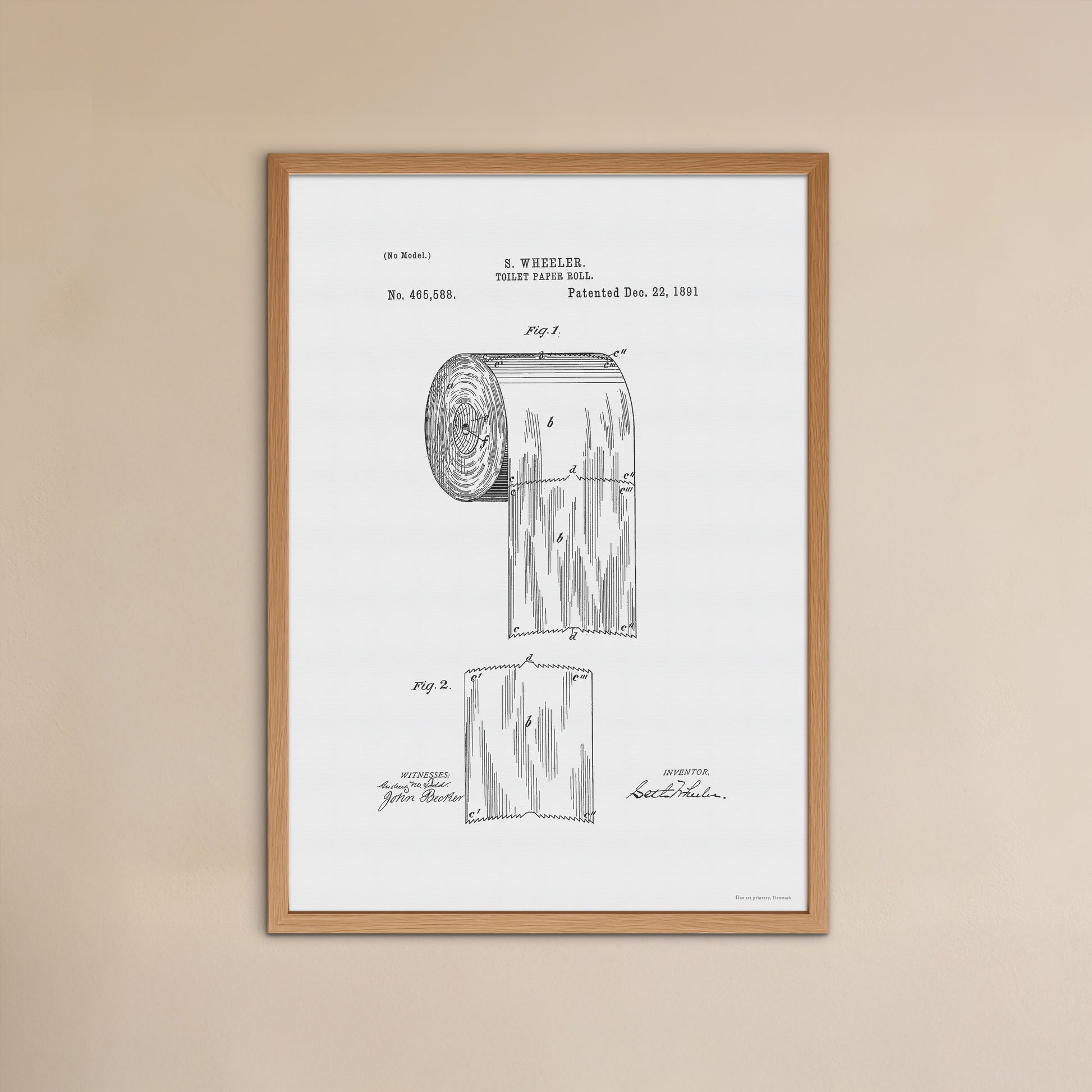 Et ikonisk patent, der ændrede hverdagen! Dette historiske patent (US465588A) fra 1891, opfundet af Seth Wheeler, viser den første dokumenterede designregistrering af toiletpapirrullen med perforerede ark – en opfindelse, der har haft en varig indflydelse på moderne hygiejne. Wheeler anses for at være en pioner inden for toiletpapirindustrien og var blandt de første til at udvikle og masseproducere ruller med foruddefinerede ark, som vi kender dem i dag.
