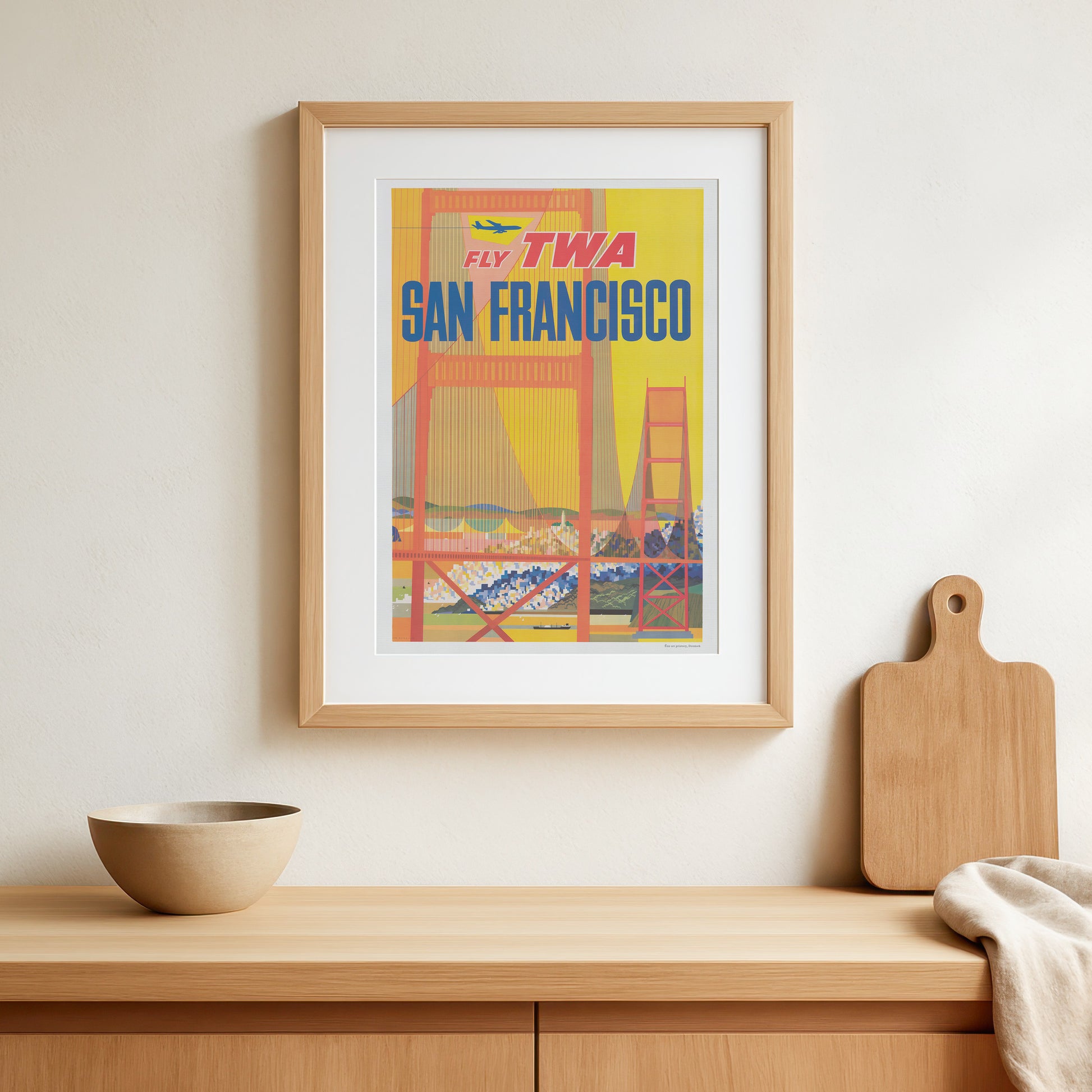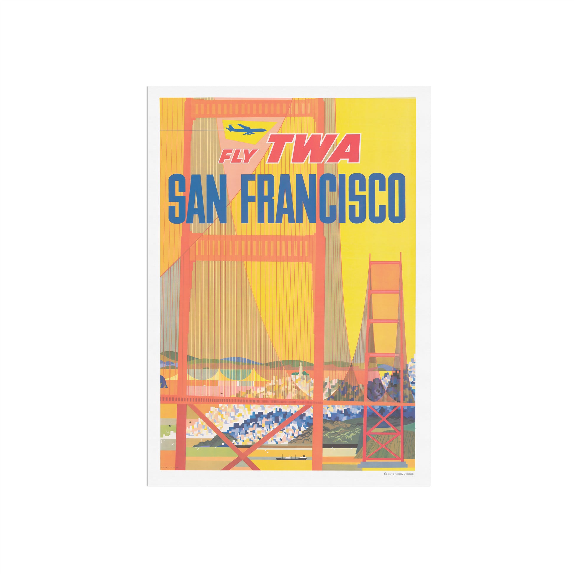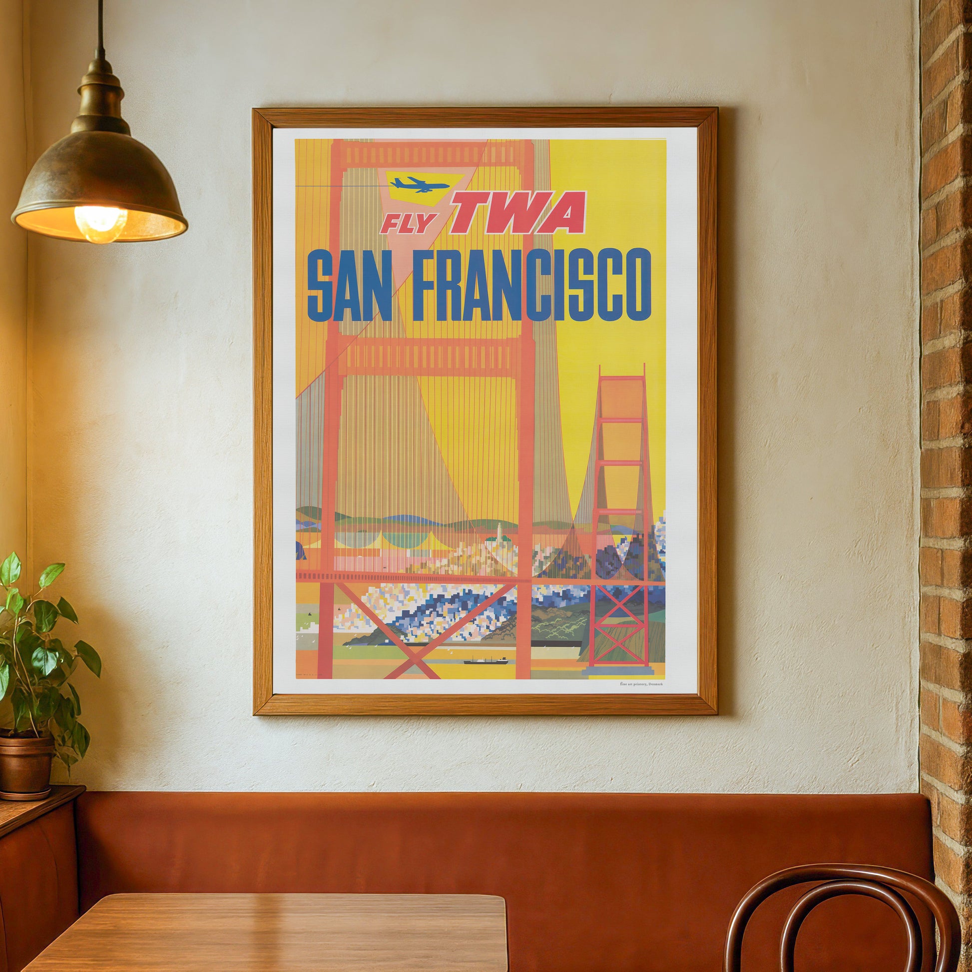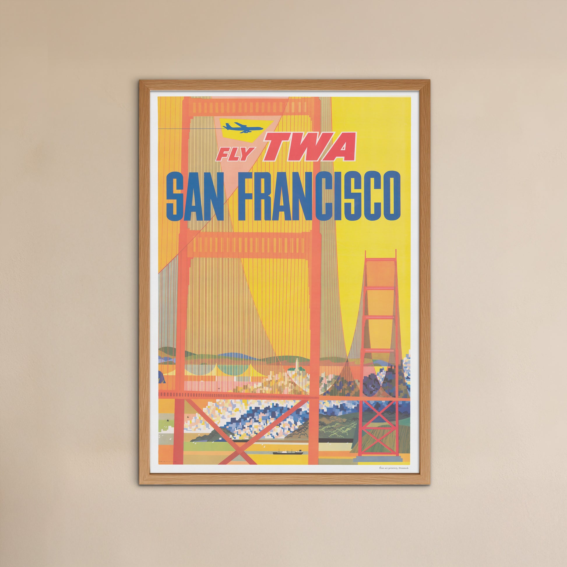 Flyv TWA: San Francisco rejseplakat, med sit view af Golden Gate Bridge.