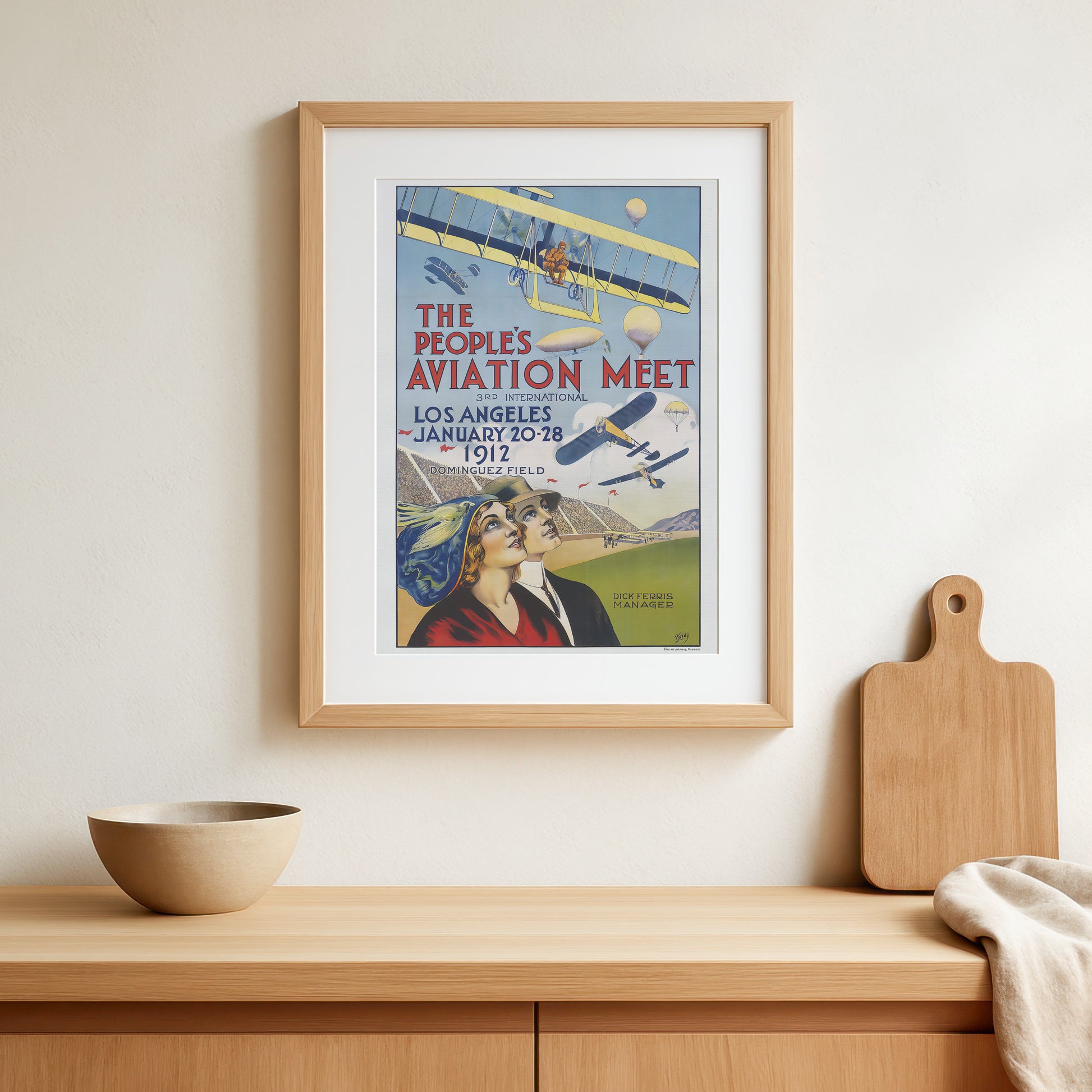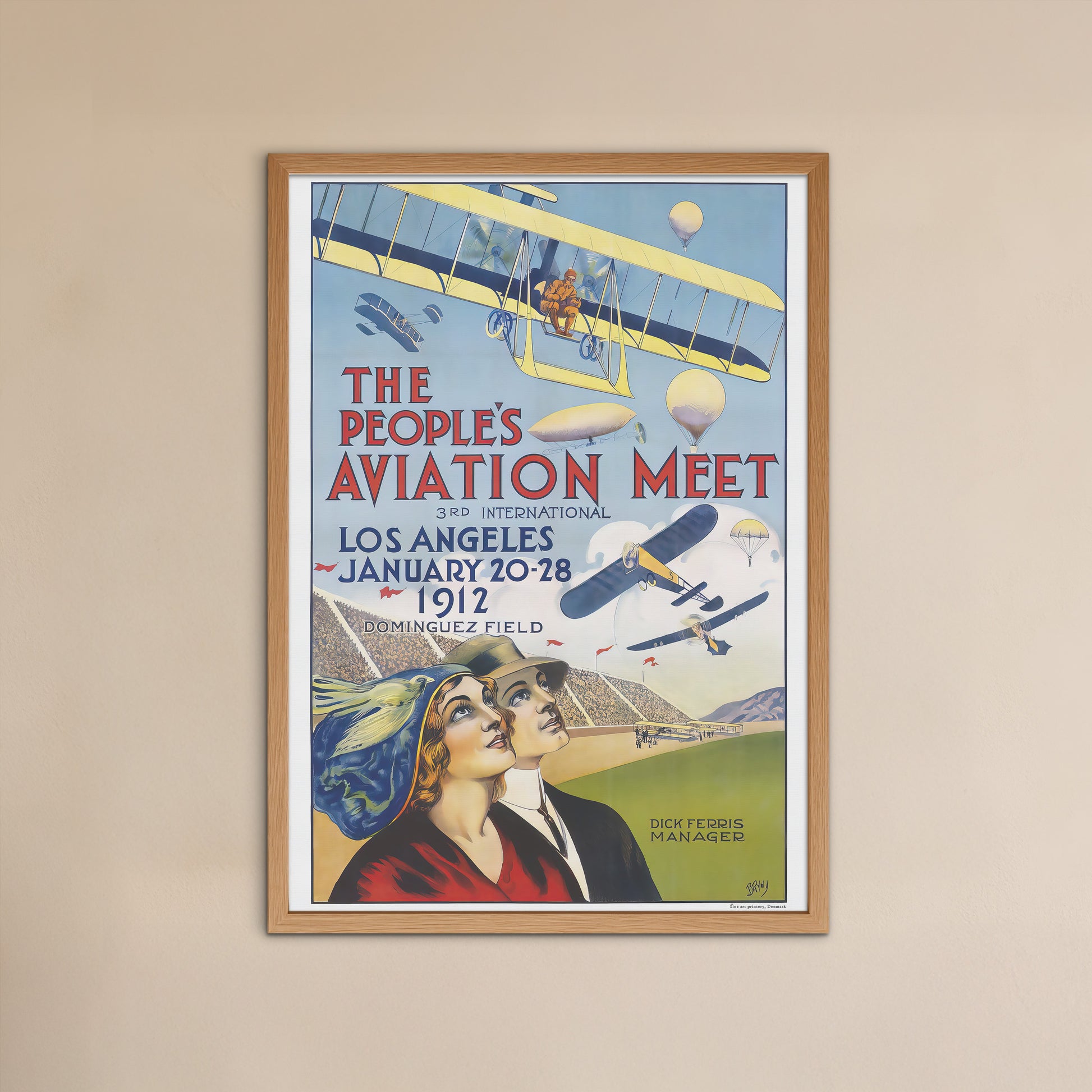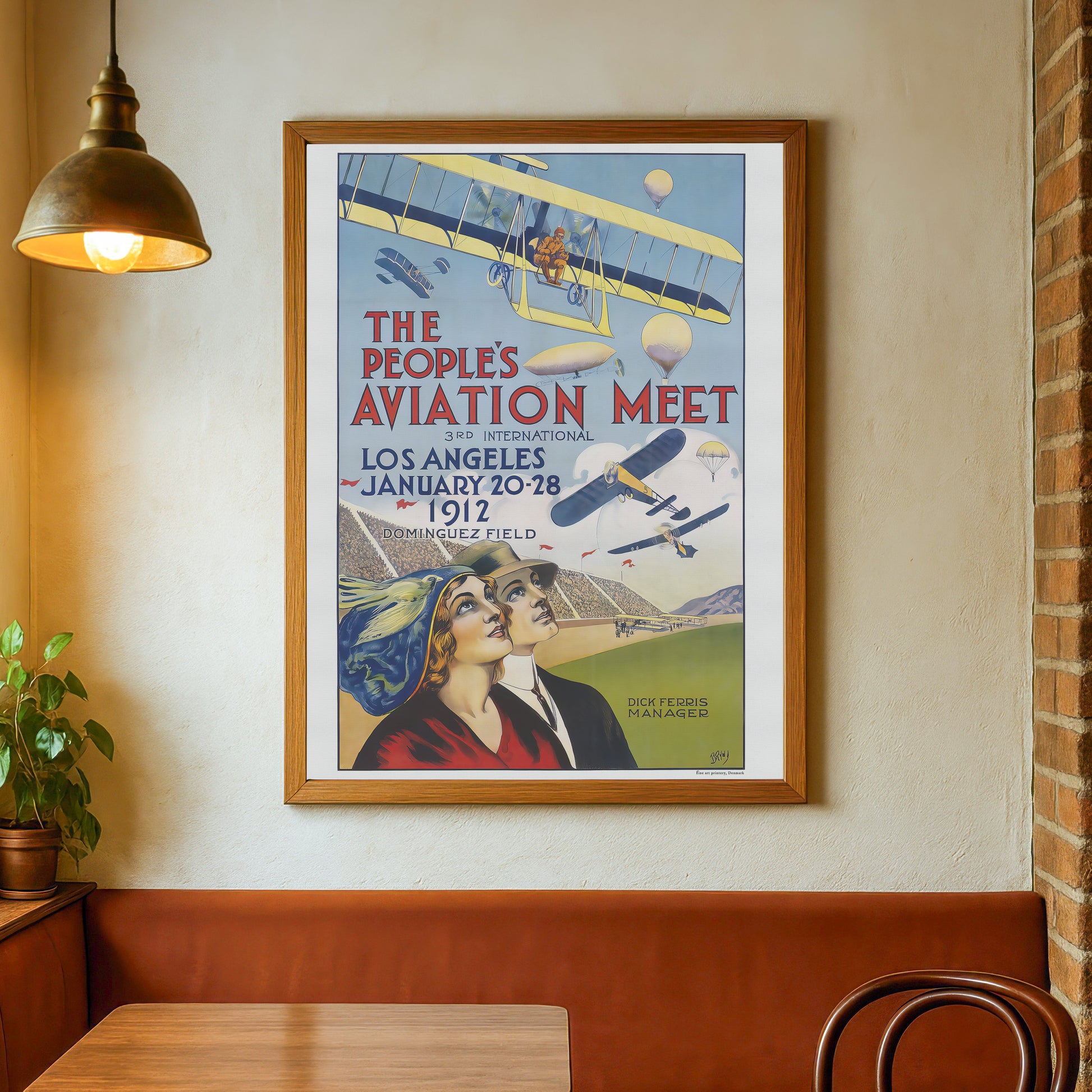 Tag en rejse tilbage i tiden med denne fængslende Art Deco Aviation-plakat, en sand perle fra 1912. Denne fantastiske illustration blev skabt for at promovere The Peoples Aviation Meet i Los Angeles, Californien, og den fanger perfekt glamouren og spændingen fra de tidlige dage af flyvning. Med sine livlige farver, elegante linjer og ikoniske billeder inkarnerer denne plakat virkelig ånden fra en æra, hvor luftfarten lige var i gang, og drømmen om at flyve højt på himlen var ved at blive til virkelighed. Det er et sjældent stykke historie, der vil transportere dig til en tid fyldt med innovation og undren. Så hvorfor ikke træde tilbage i tiden og opleve magien ved denne smukke plakat?