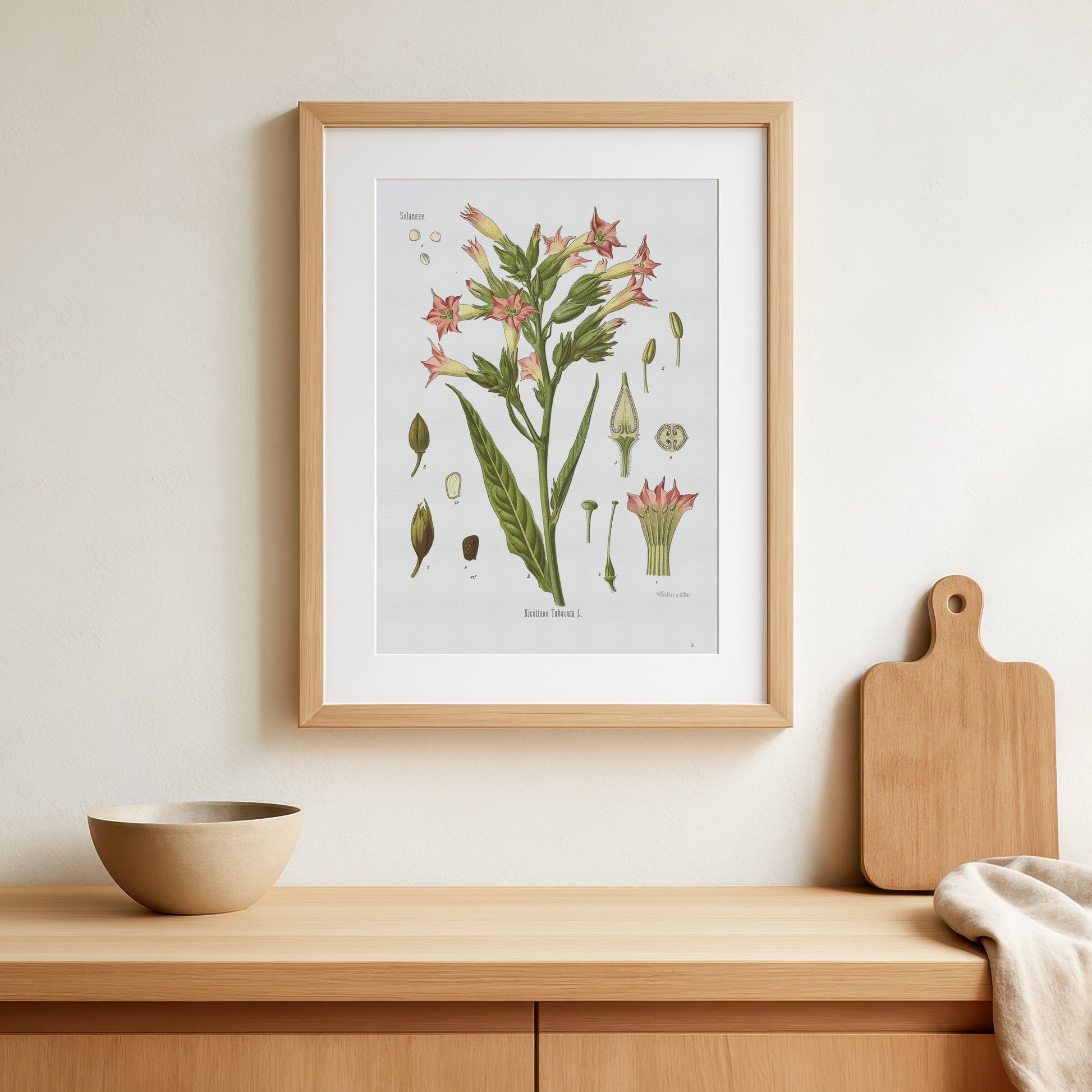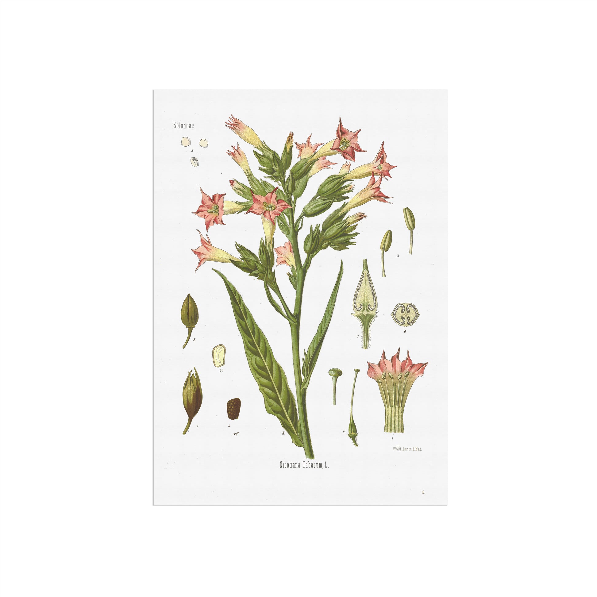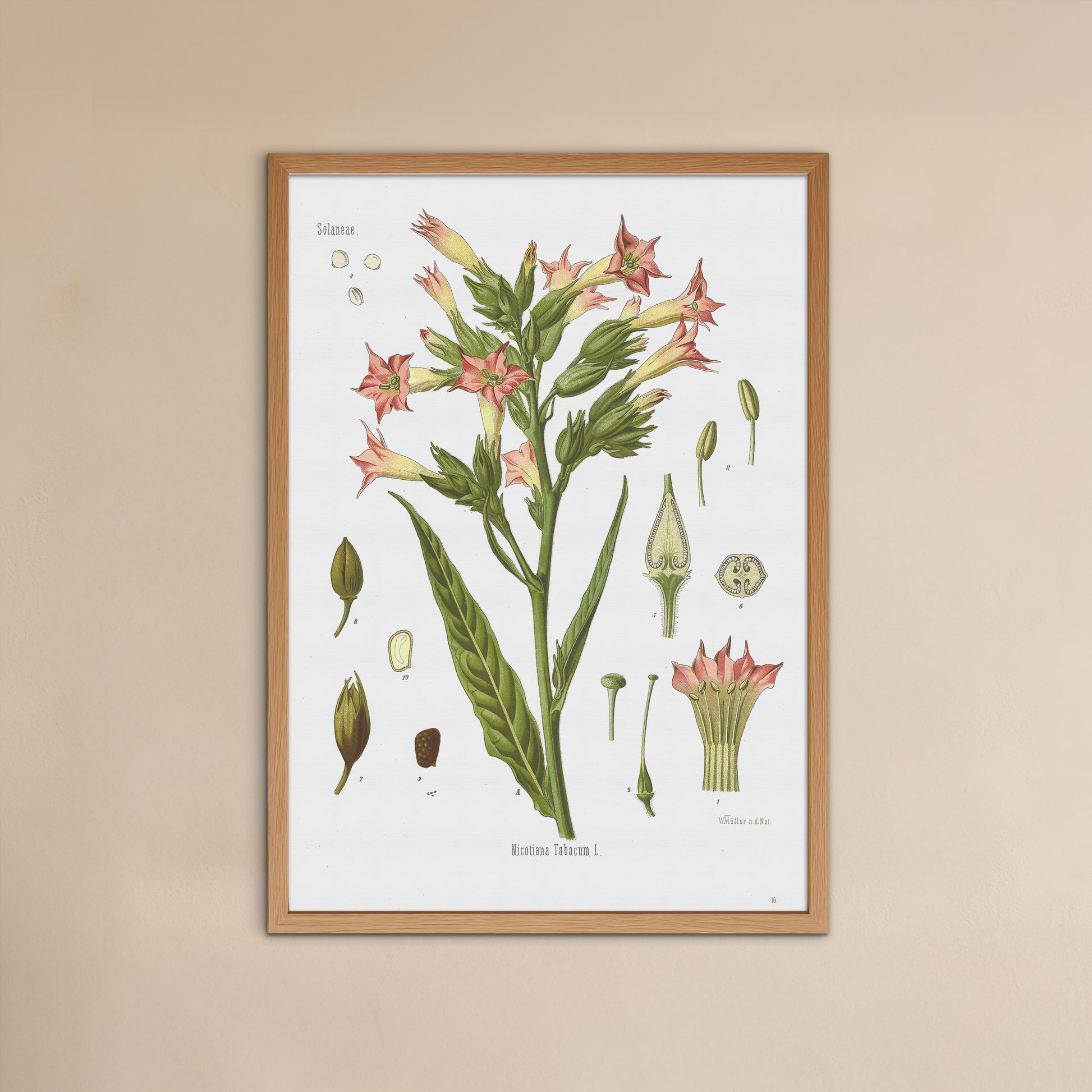 Denne klassiske illustration af tobaksplanten er en fantastisk tilføjelse til ethvert hjem eller kontor. Oprindeligt blev illustrationen udgivet i Köhlers lægeplanter, 1887, og er et utroligt interessant og unikt kunstværk. Det er helt sikkert et iøjnefaldende samtalestykke som er perfekt til dem, der leder efter et spændende kunstværk, der heller ikke stjæler mere opmærksomhed end nødvendigt. Den kreative enkelhed i dette design vil helt sikkert bringe dig tilbage til det 19. århundrede, hvor smukke botaniske illustrationer blev møjsommeligt håndtegnede. Et fantastisk eksempel på tobakkens historie, lavet på fsc-certificeret antikt stribet papir, som ingen samling bør være foruden.