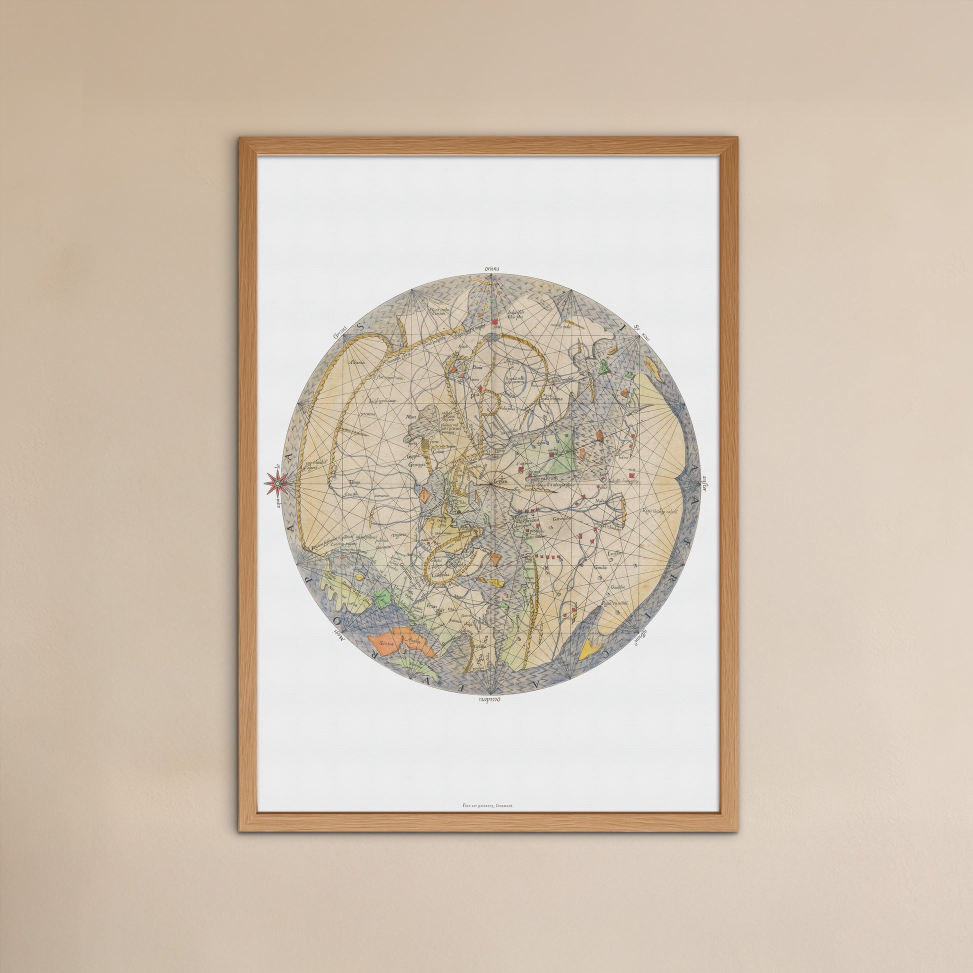 Replika af Verdenskortet Mappa Mundi af Johann Bongars fra 1611. Hans version er bygget på en endnu ældre Mappa Mundi af Pietro Vesconte, fra omkring 1321.