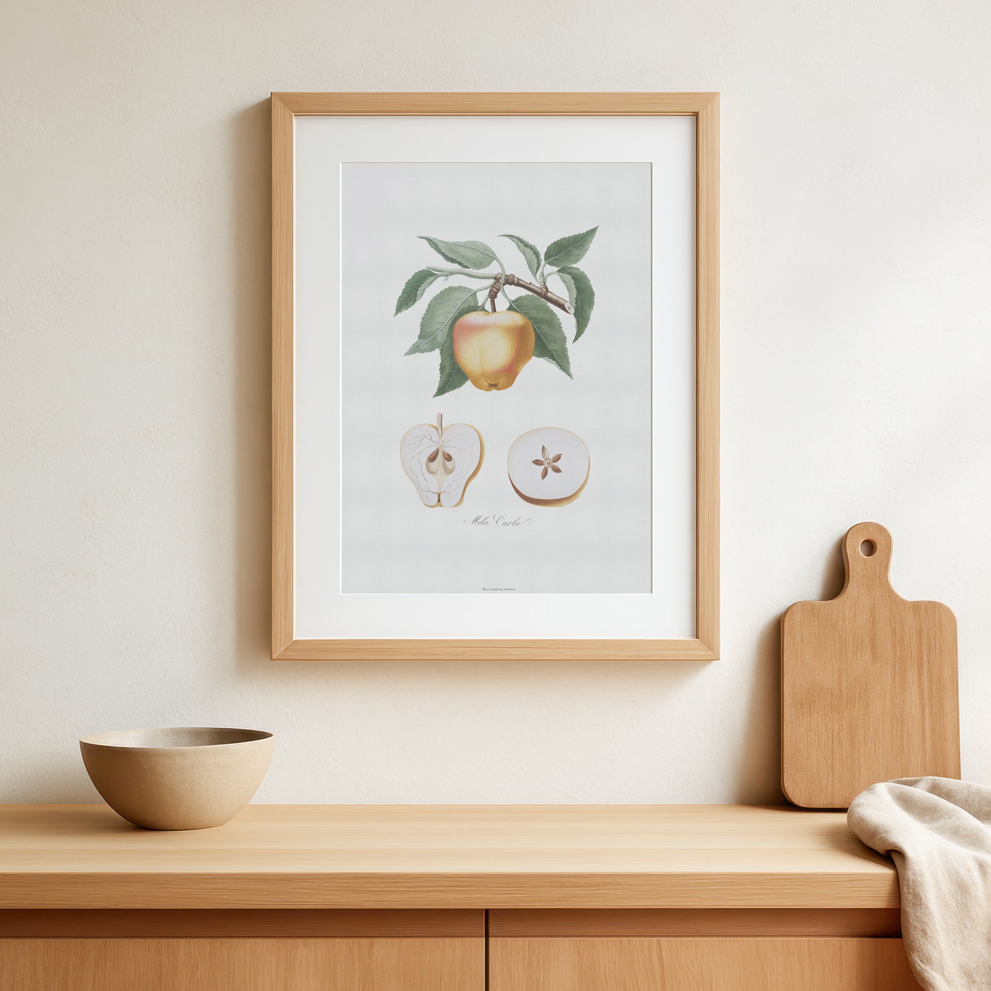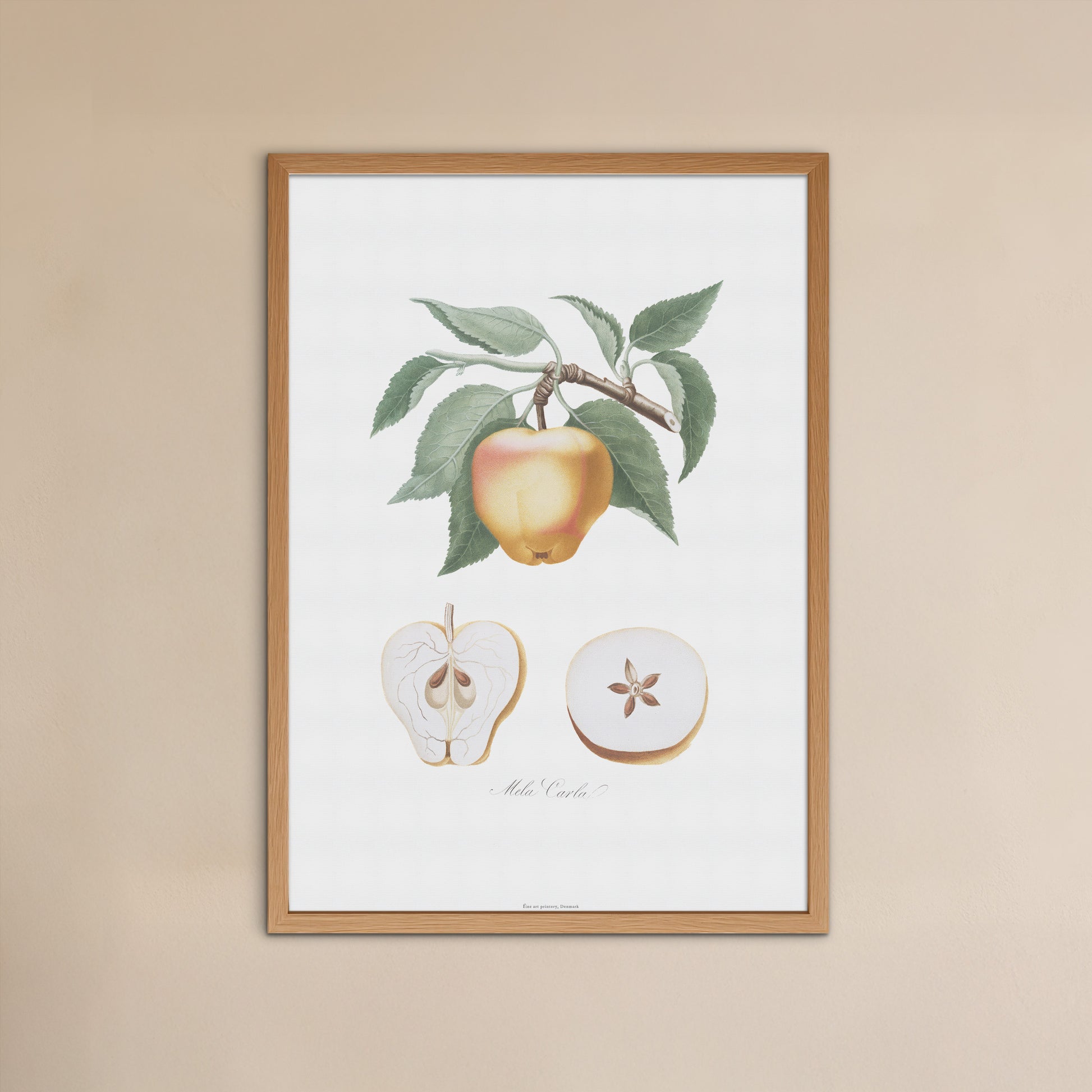 Denne plakat er perfekt til at skabe en rolig og sofistikeret atmosfære i køkkenet, spisestuen, eller et hyggeligt hjørne af stuen. Den er en ideel gave til æbleelskere, haveentusiaster eller enhver, der værdsætter klassisk botanisk kunst.