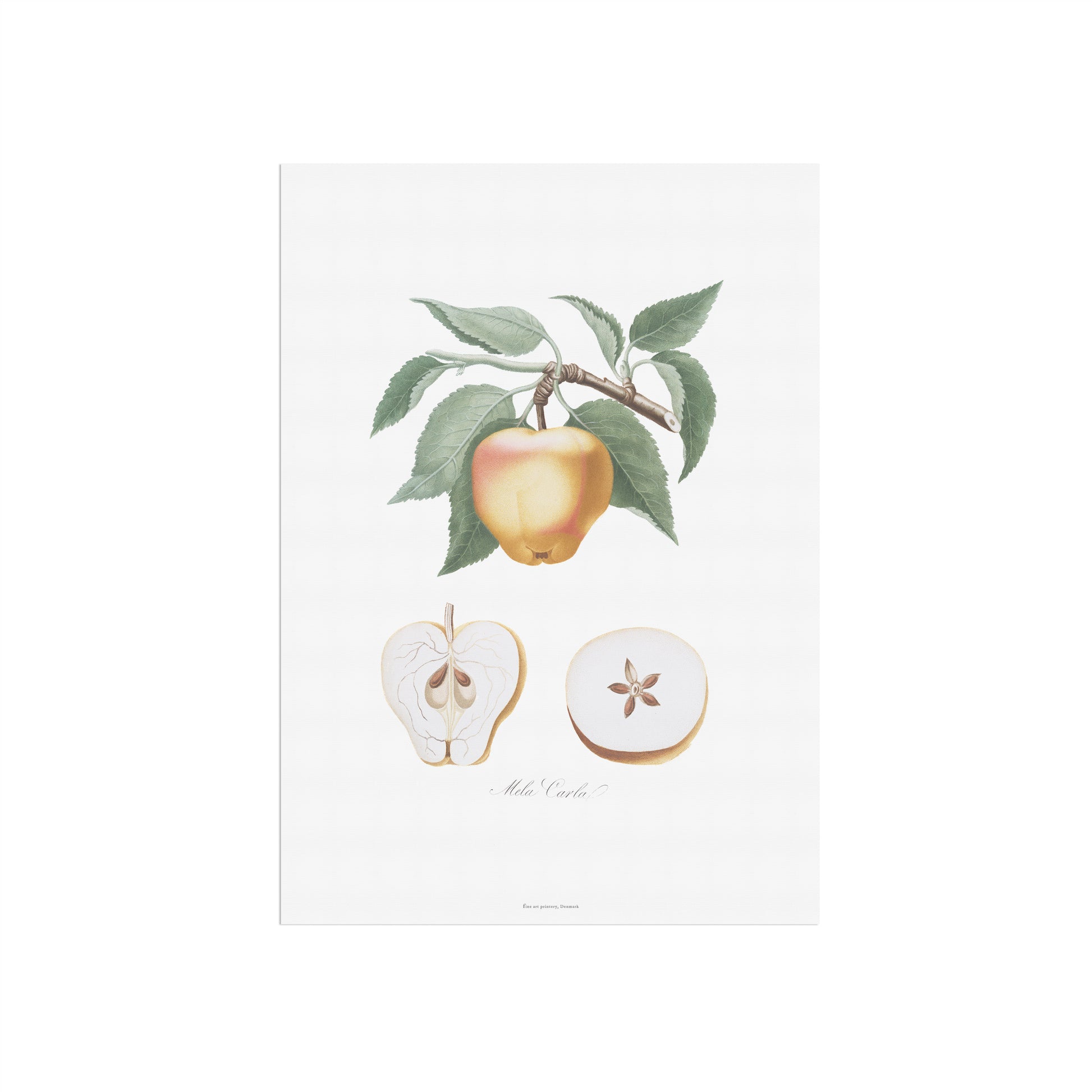 Tilføj et strejf af historisk elegance til dit hjem med denne smukke vintage æble plakat. Motivet er en autentisk reproduktion af en illustration fra Pomona Italiana (1817-1839), et af de mest berømte pomologiske værker, skabt af den italienske greve og botaniker Giorgio Gallesio. Værket er kendt for sine udsøgte og præcise illustrationer af frugter, der ikke kun er videnskabelige dokumenter, men også sande kunstværker.