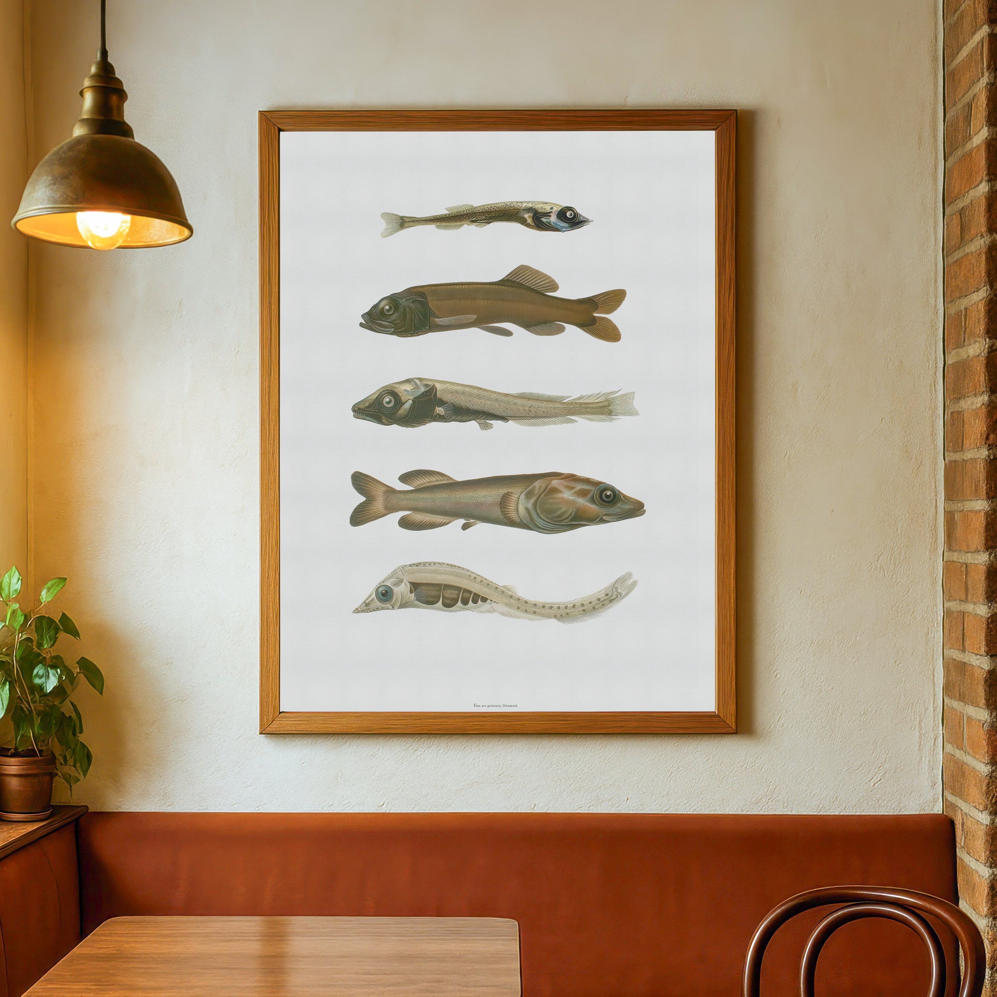 Vintage Dybhavsfisk Plakat - Smooth-Heads og Spøgelsesfisk | Sjældne Fiskearter