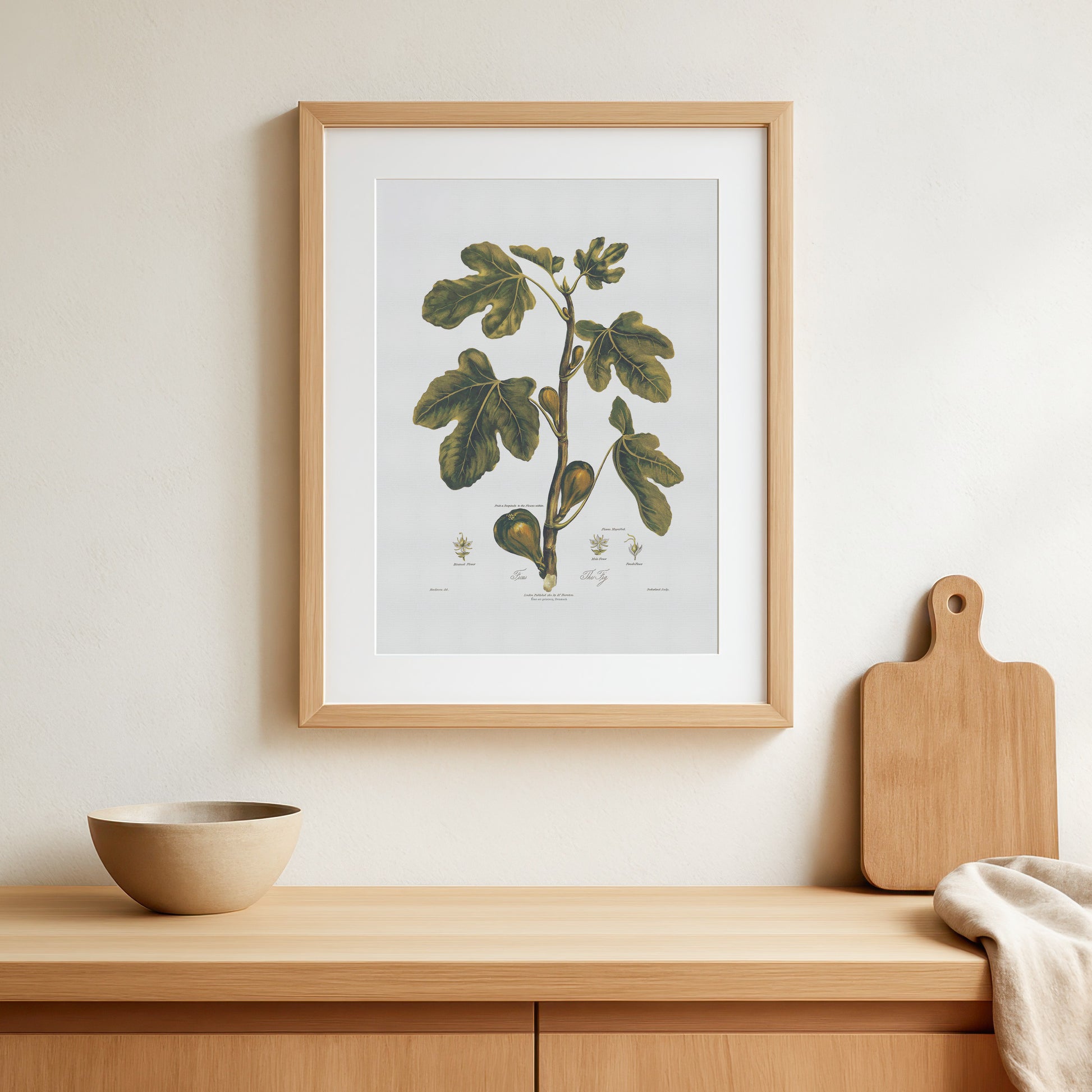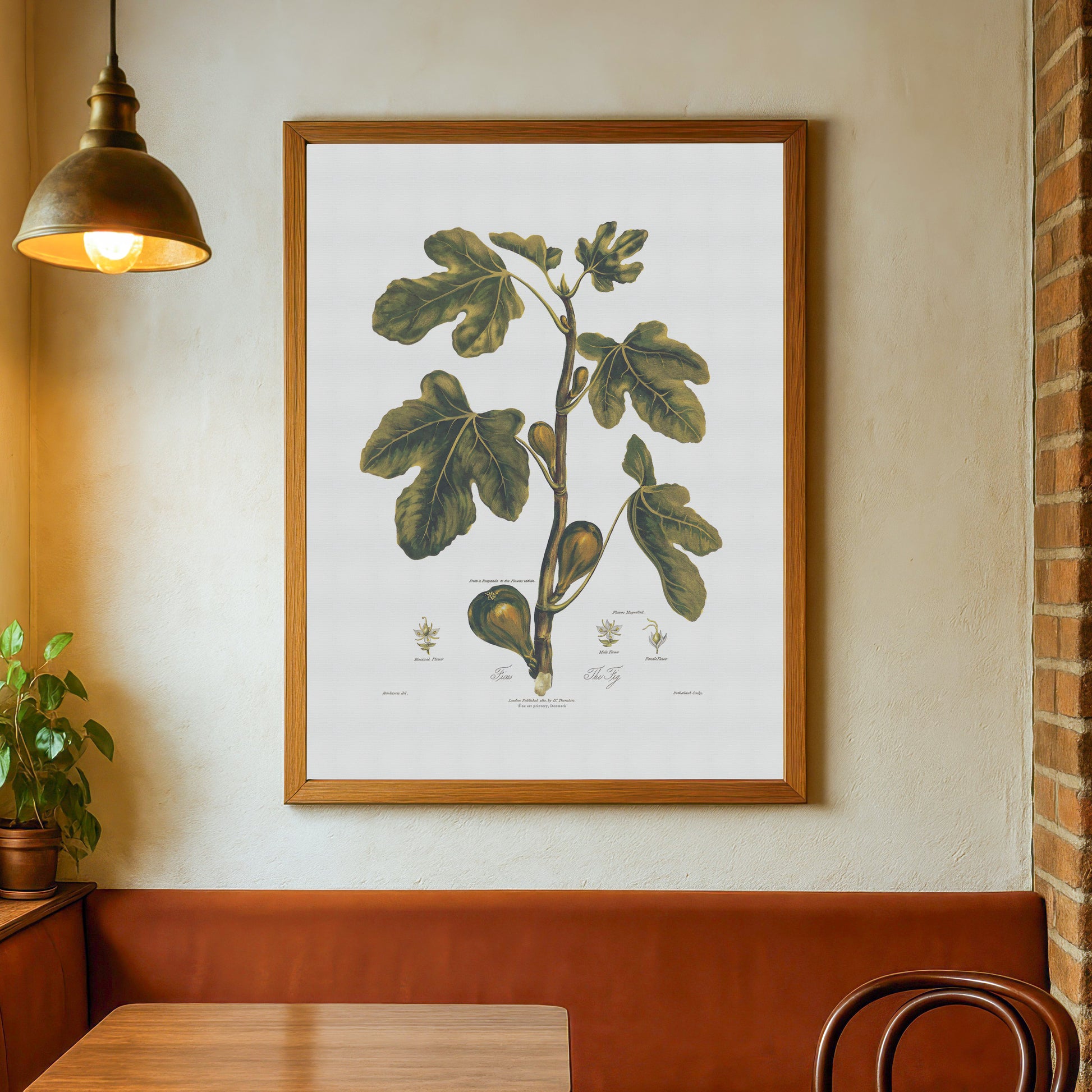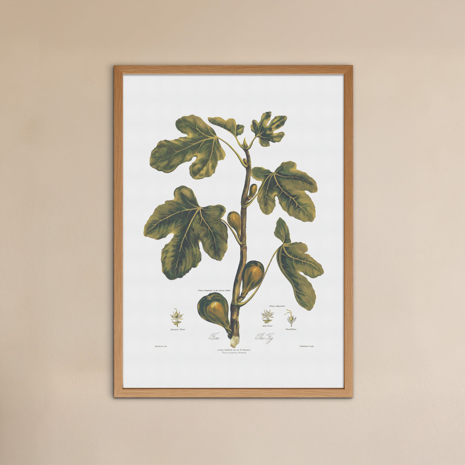 Tilføj et strejf af klassisk botanisk charme til dit hjem med denne smukke vintage plakat, der viser et detaljeret motiv af et figen-træ (Ficus Carica). Illustrationen stammer fra et af de mest berømte og kunstnerisk betydningsfulde botaniske værker, "A New Illustration of the Sexual System of Carolus von Linnæus" af Robert John Thornton, udgivet omkring 1807.