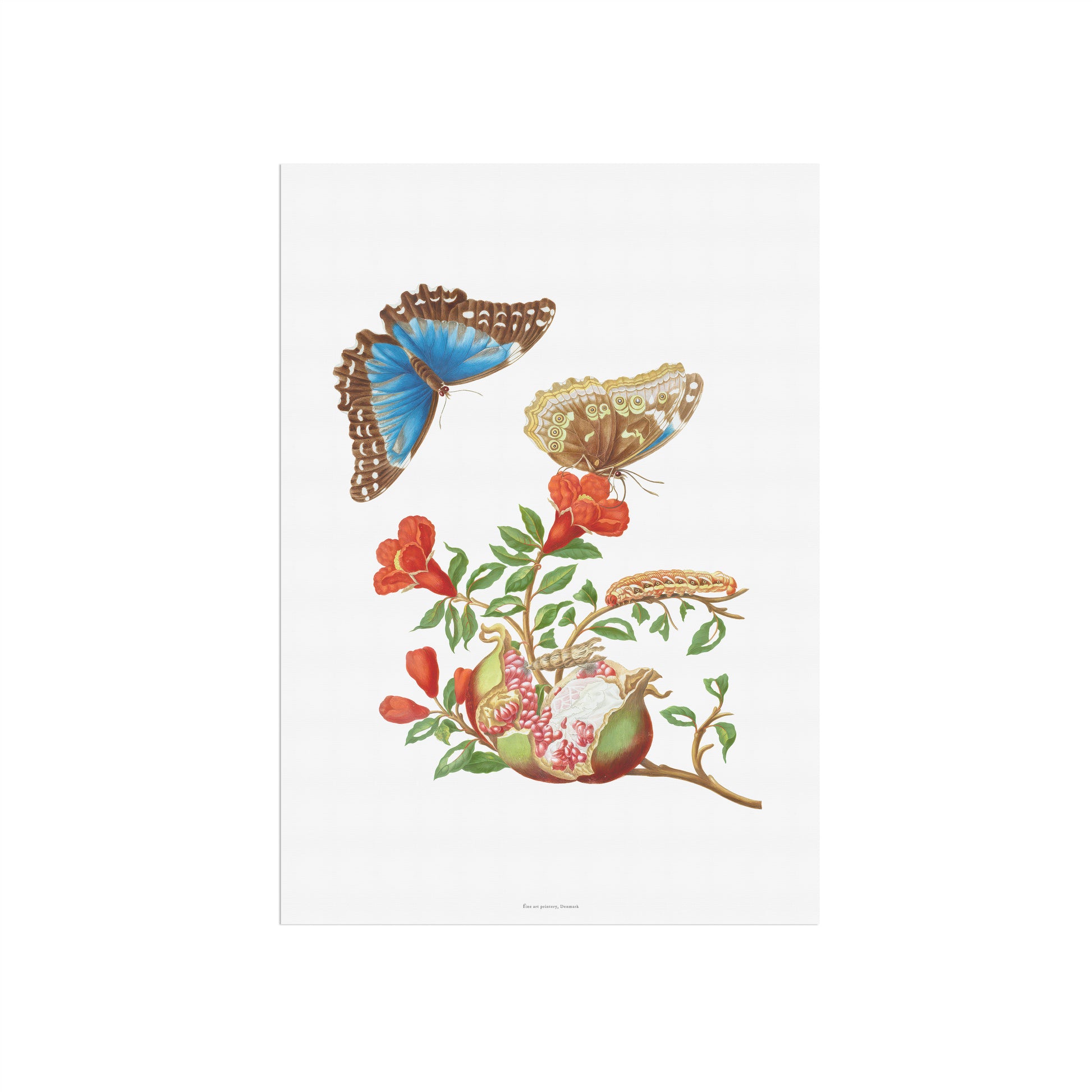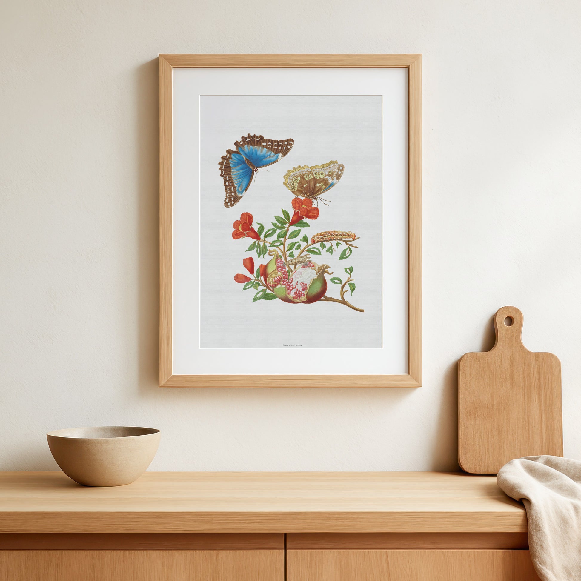 Vintage Granatæble og Sommerfugl Plakat - Maria Sibylla Merian | Botanisk Vægkunst