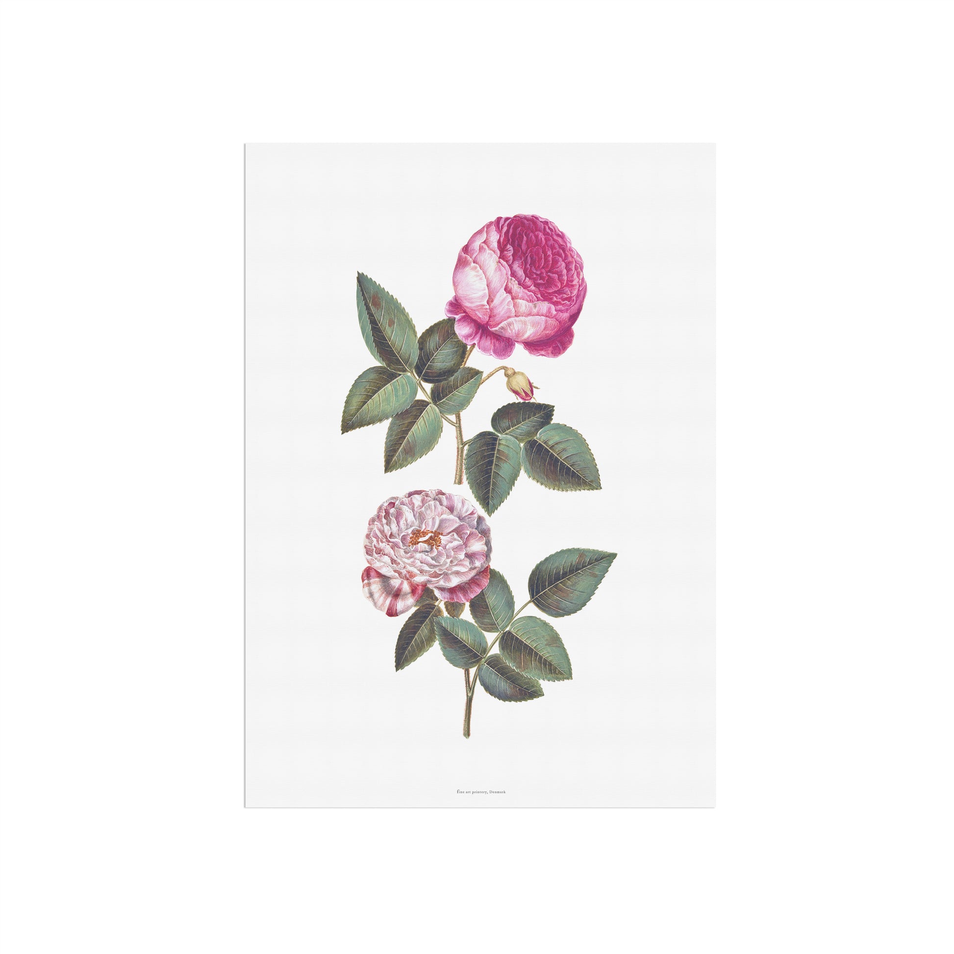 Vintage Rose Plakat - Centifolia og Rosa Mundi | Hans Simon Holtzbecker Botanisk Kunst